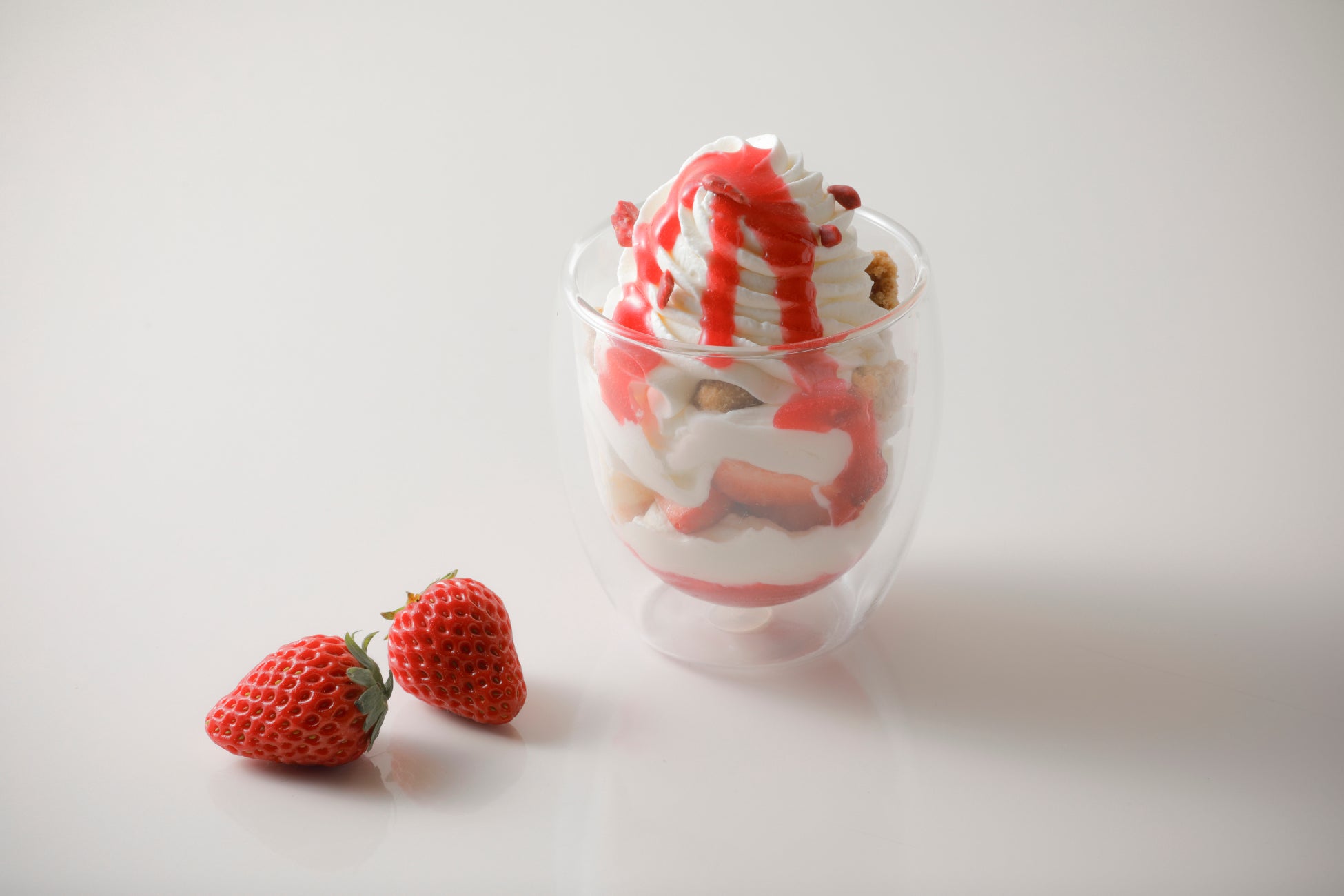 しっとりと仕上げたホームメイドのベイクドチーズケーキに、みずみずしいフレッシュのいちご、濃厚なミルクソフトクリームを重ね、甘酸っぱさが広がるラズベリーソースと共に仕立てた春限定のサンデー。チーズケーキのコクとストロベリーの華やかな酸味が溶け合い、口の中に優しい春の余韻を残します。甘さは控えめに、最後のひと口まで軽やかにお楽しみください。
