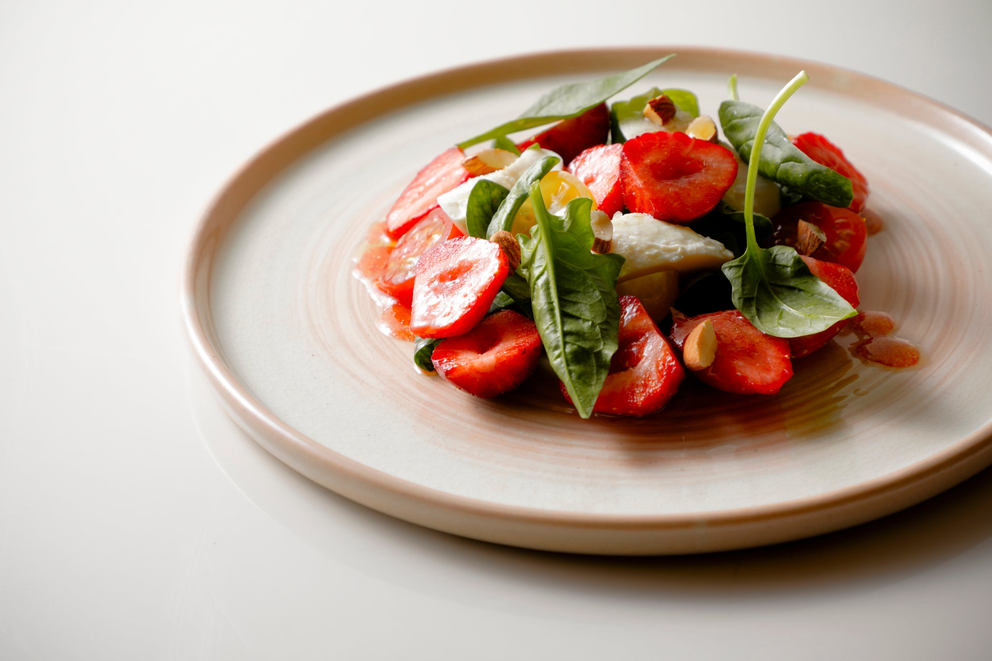 ■いちごのサラダ 自家製豆腐 ベビースピナッチ トマト フランボワーズドレッシング – 1,980円(税込)