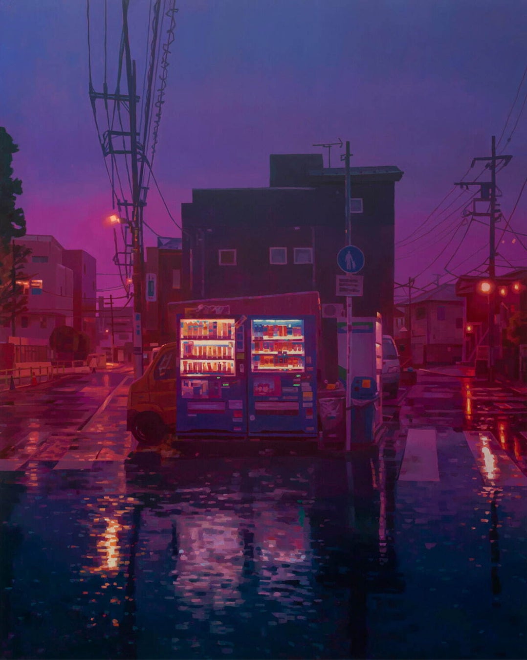 コラボレーションでは、日本の都市生活を象徴する特徴的な光景として、森本の作品にしばしば登場する自動販売機の作品2点《Summer Rain》《Before The End》をピックアップし、ニットに落とし込みました。