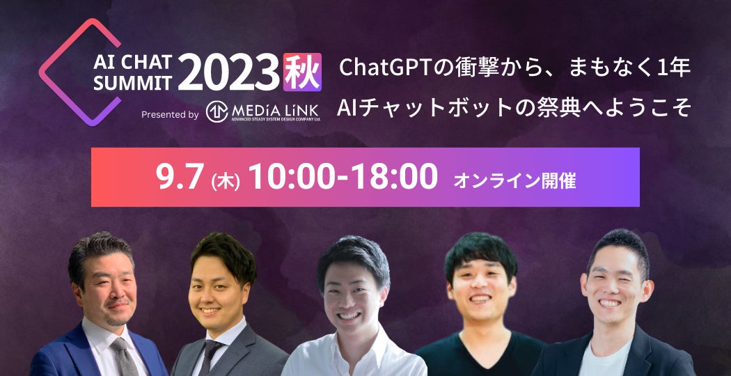 【動画公開】すべてのカスタマーサポートへ贈るAIチャットボットの祭典「AI CHAT SUMMIT 2023秋」9/7木10:00~18:00開催!
