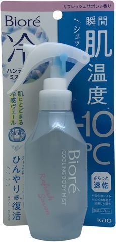 『ビオレ 冷ハンディミスト サボンの香り』は、肌の表面温度を瞬時に10℃下げるミスト。暑い夏には欠かせないと謳っている(日本製品)。