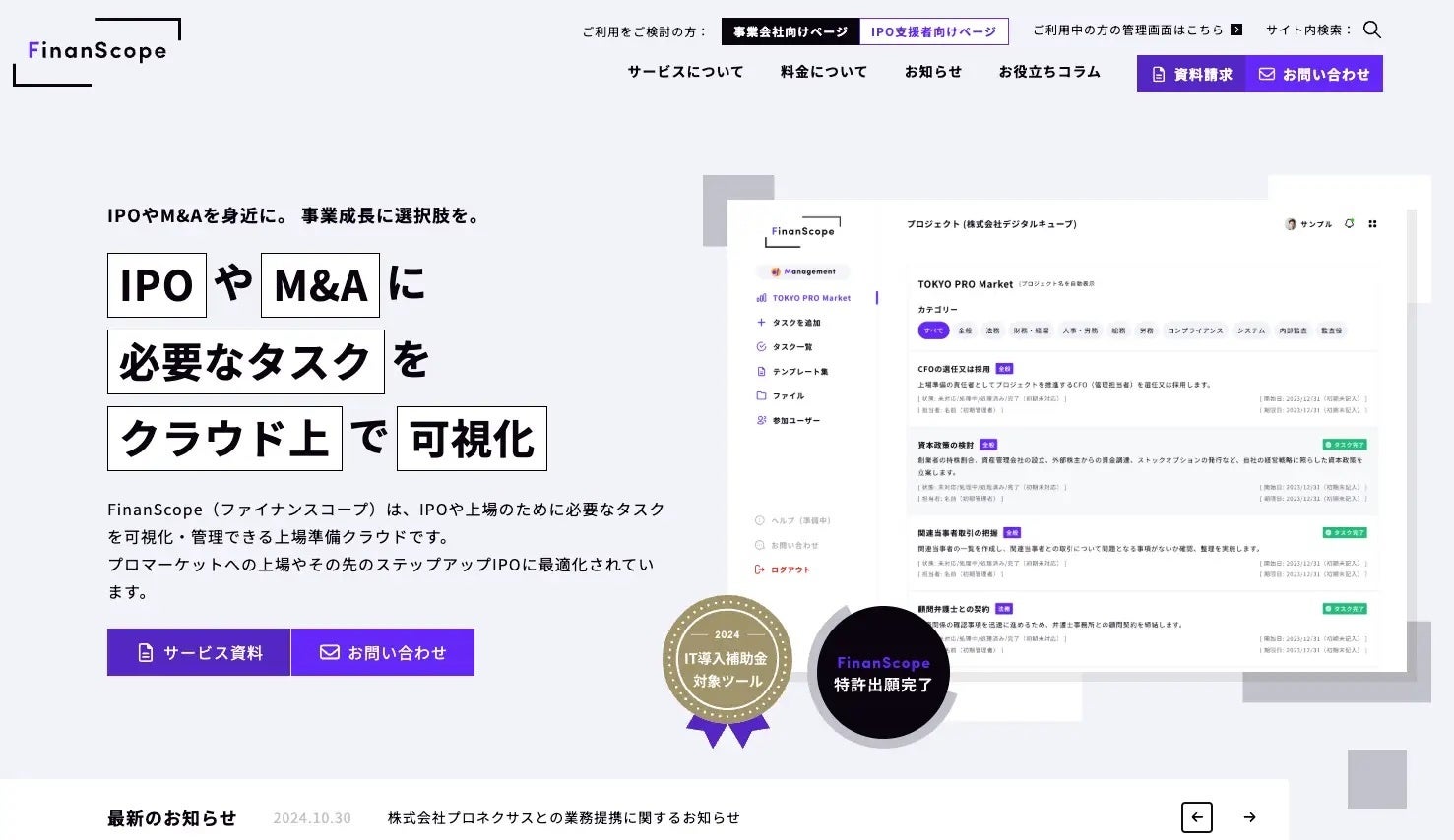 上場準備クラウド FinanScope:https://finanscope.jp/