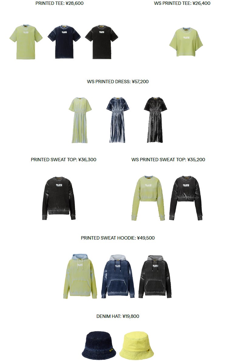 デニム以外にも、細部までこだわりが詰まったシンプルながらも個性が光るアパレルアイテムが展開されます。スウェットシャツやTシャツは、日本の職人の手により一枚一枚丹念に全面プリントが施され、二度のプリント工程でインクに厚みと深みを与え、デザインに立体感を生み出しています。その他にも、シースルーとリブニットを組み合わせたユニークな2-in-1アイテム、やわらかな肌触りのニットウエアなど、デニムアイテムを際立たせ、カジュアルからエレガントなスタイリングまでさまざまなシーンで活躍する魅力的なラインアップが揃います。