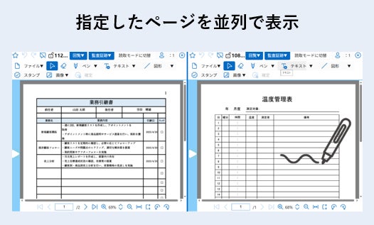 同一ファイル内で指定した異なるページや、2つのファイル内のそれぞれで指定したページを1画面に並列で表示します。