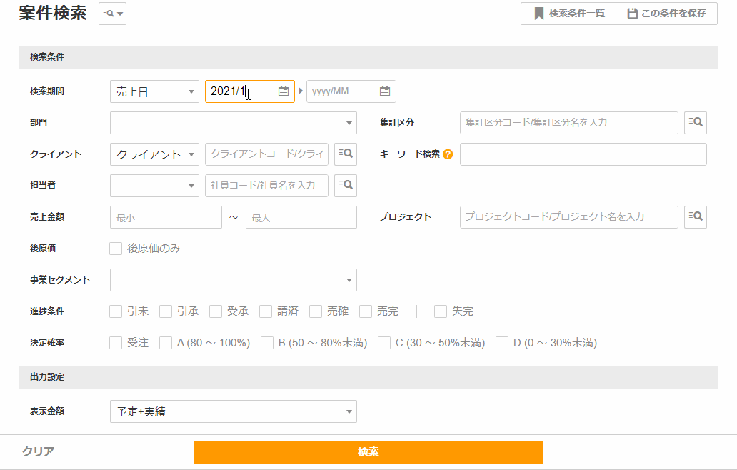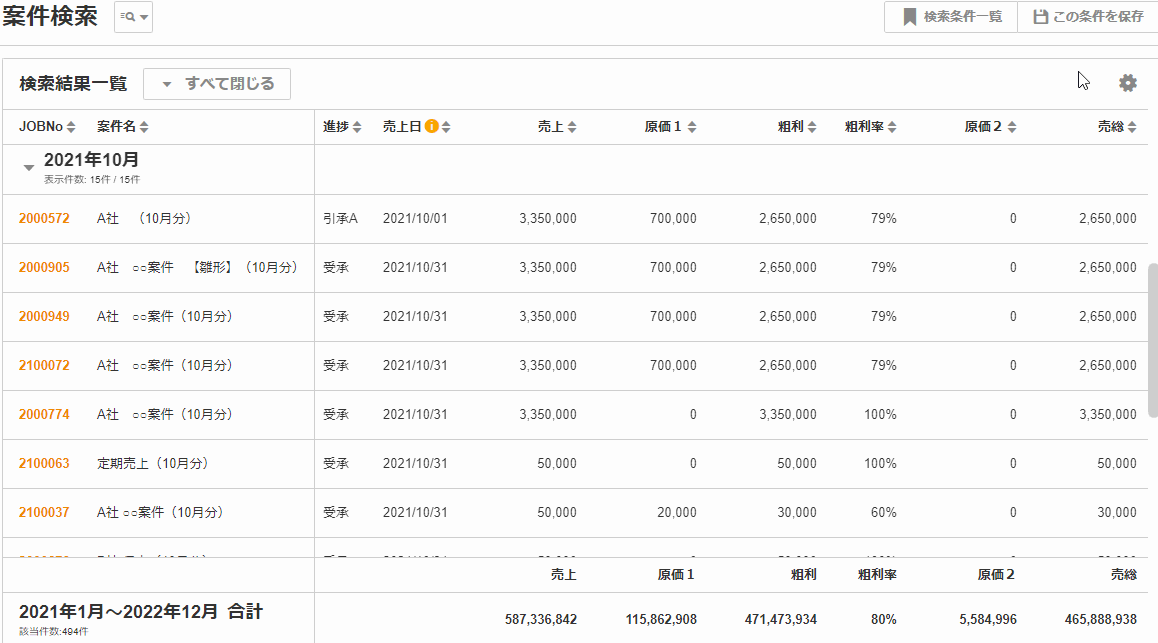 案件検索機能のデザイン刷新により、先々の売上・利益予測や過去の売上・利益実績が一目で分かりやすくなりました。