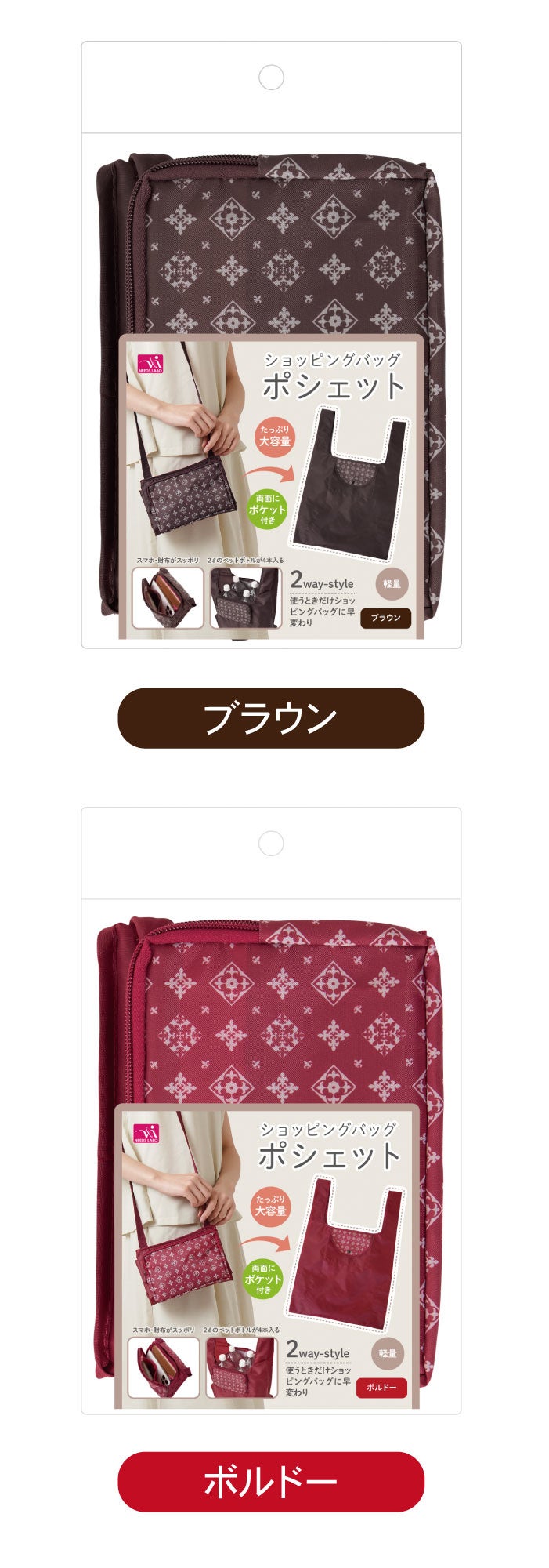 株式会社ニーズ(本社:兵庫県加古川市、代表取締役:本岡勝則)は、「ショッピングバッグ ポシェット」1,280円(税込)を5月11日より発売開始しました。