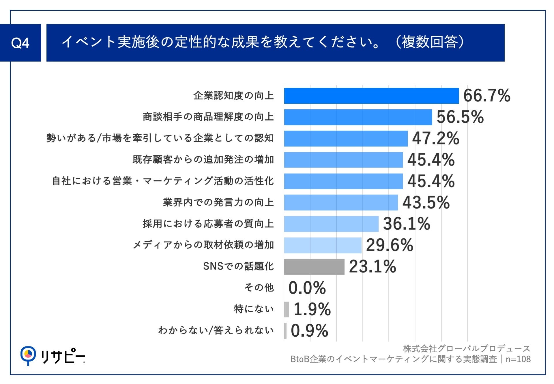 当社は、予算規模1,000万円以上のリアルなカンファレンス型イベントを企画・実施したことがあるBtoB企業マーケティング担当者108名を対象に、「BtoB企業のイベントマーケティングに関する実態調査」を実施しました※4。