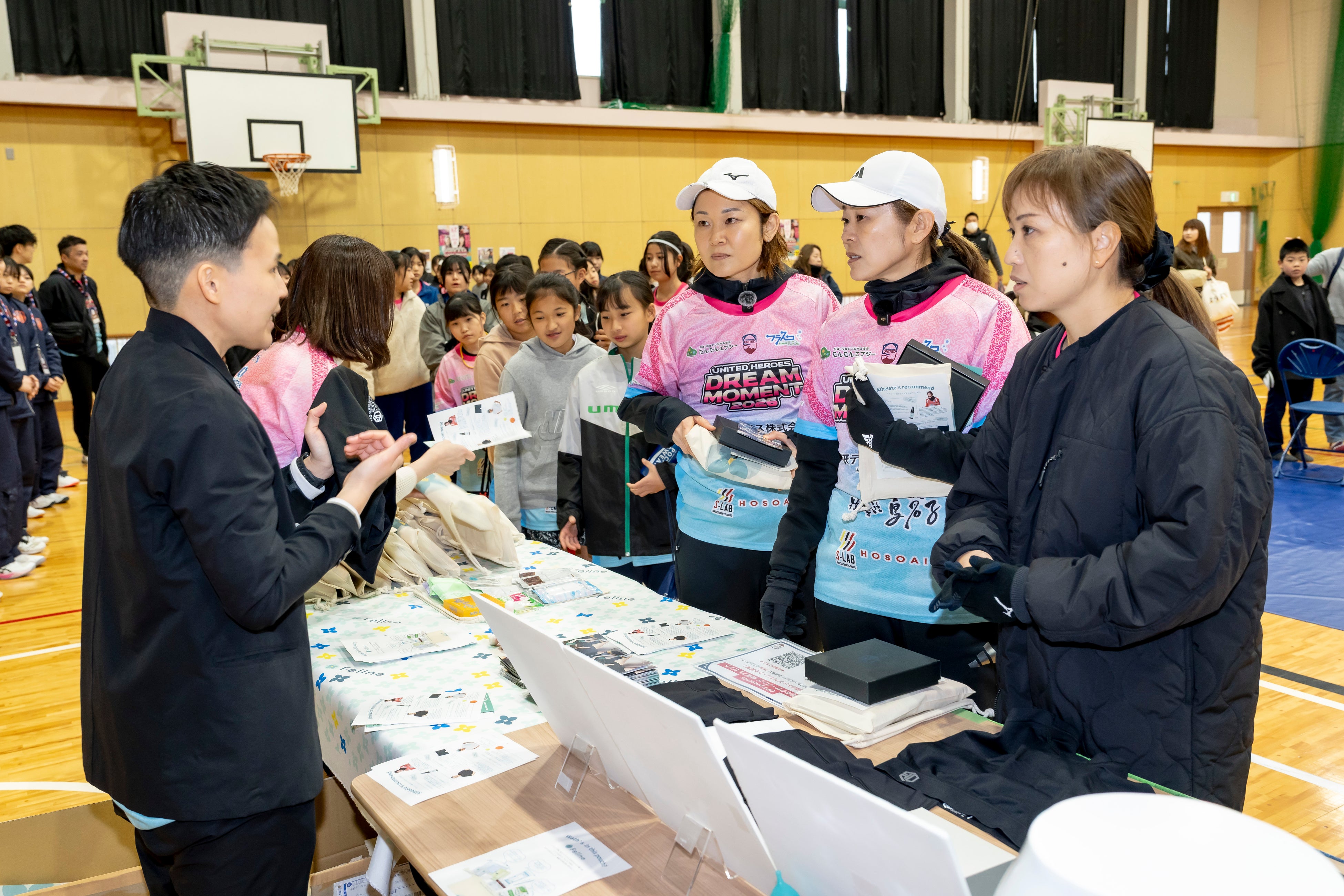 翌3月7日には、一般社団法人福知山ユナイテッドの女子アスリート応援プロジェクト「Bloomine」に参加。株式会社wagamamaと共同でブースを出展しました。スポーツに取り組む子どもたちへ「もしもの時のお守りポーチ」を配布し、体調の変化に気づくこと、そして周囲の大人がそれを支える重要性を伝えました。当日は、元サッカー女子日本代表の澤穂希選手、元バレーボール日本代表の竹下佳江選手を迎え、女子アスリートや保護者、指導者へ向けたメッセージも発信。働く環境だけでなく、スポーツや教育の現場にも共通する課題として、女性の健康と向き合う必要性が共有されました。