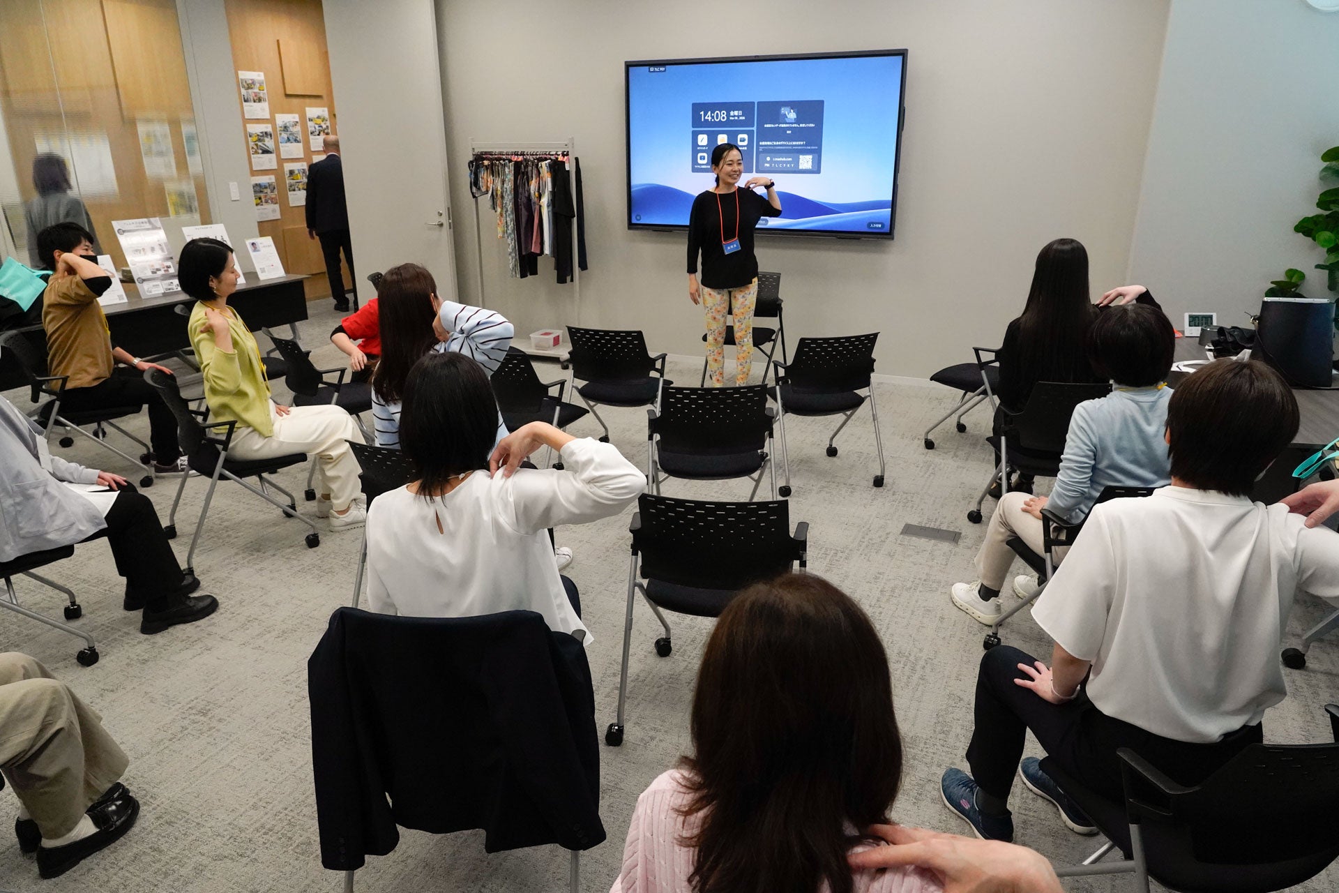 アツギ株式会社による、オフィスで出来るチェアヨガのワークショップを開催。隙間時間に体をほぐし心身のリフレッシュ法をご紹介
