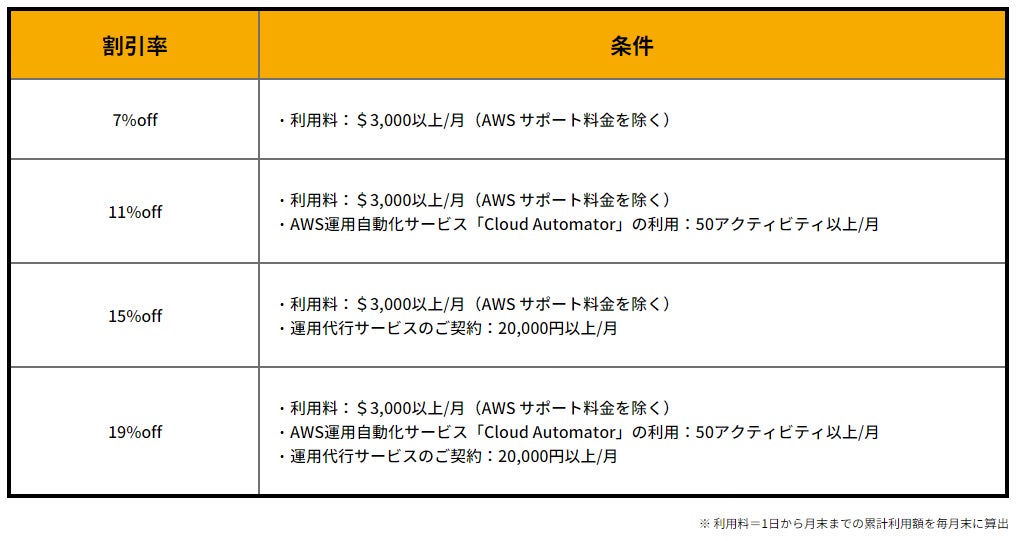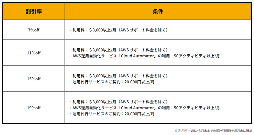 ご利用サービスに応じて割引率が異なります。各割引率の条件については下記をご覧ください。