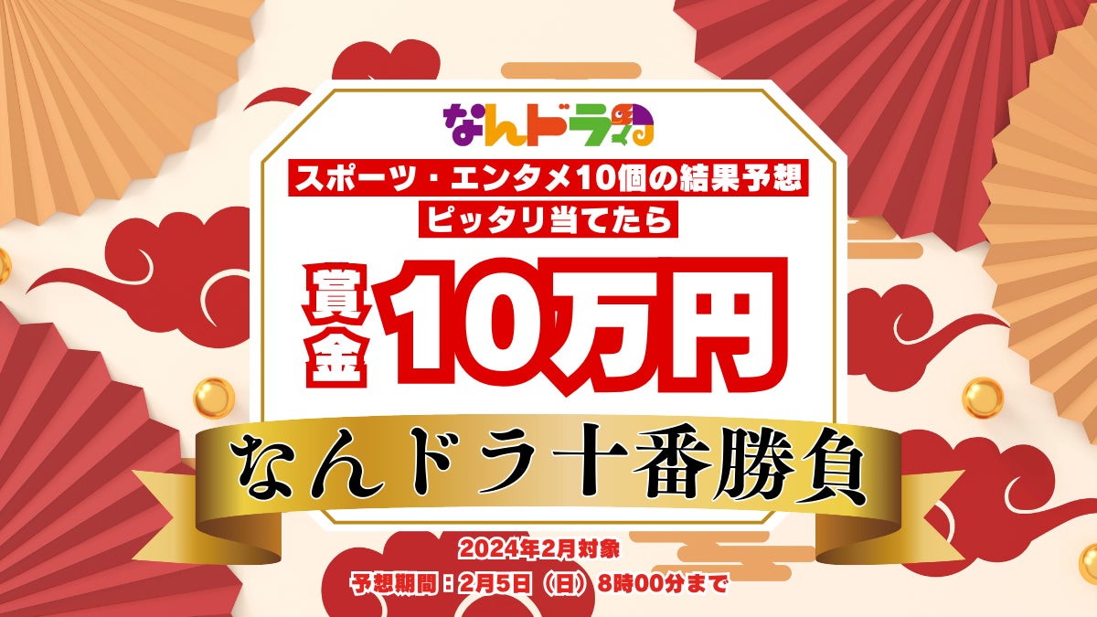 スポーツ・エンタメ結果予想 10個全て的中で賞金10万円! 『なんドラ十番勝負』(2024年2月分)開催!