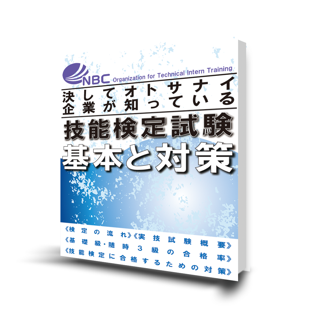 エヌ・ビー・シー協同組合は、研修制度と呼ばれていた時から本制度に携わっており、数多くの技能検定試験・技能実習生の学習方法を見てきました。この経験をもとに、多くの試験に共通している<実技試験><筆記試験>のポイントをピックアップし本書にまとめました。本書の内容を把握し、試験の一発合格を目指していただければと思います。