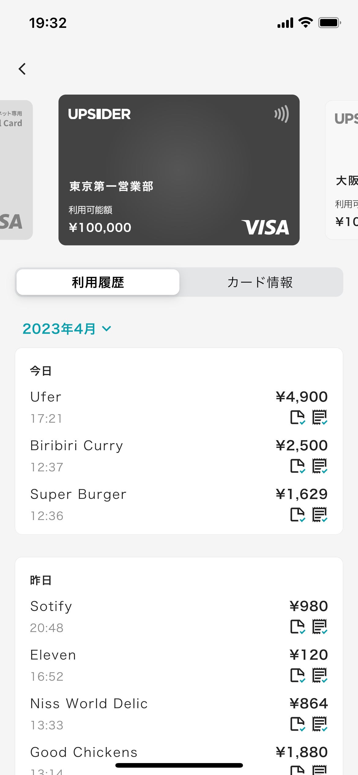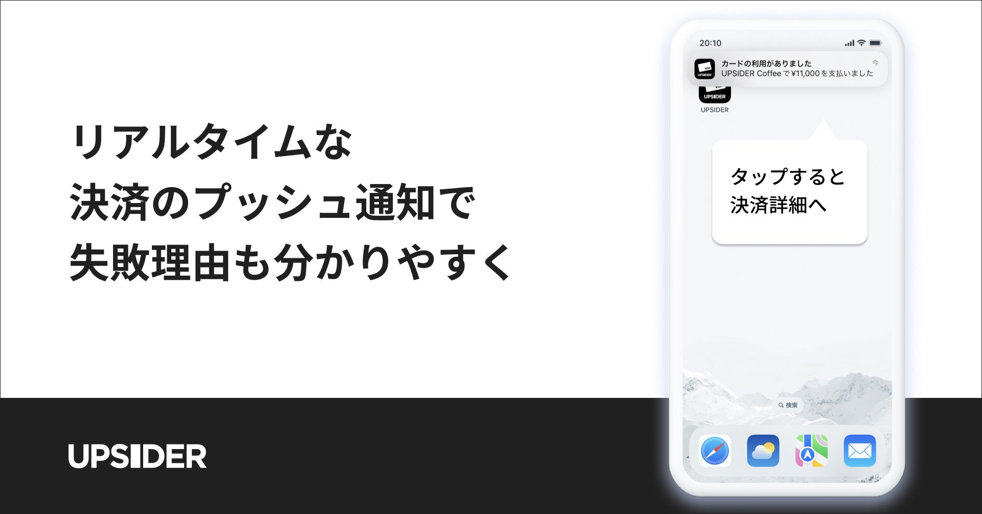 これまでも、UPSIDERは決済データをWebにリアルタイムに反映する機能を持っており、決済後にタイムラグなく利用状況の詳細を確認できるため、多くのユーザーに好評でした。iPhoneアプリのリリースにより、UPSIDERの利用があり次第、アプリの通知を受け取ることができるようになります。これまで以上にスムーズに決済の情報にアクセスすることが可能となりました。