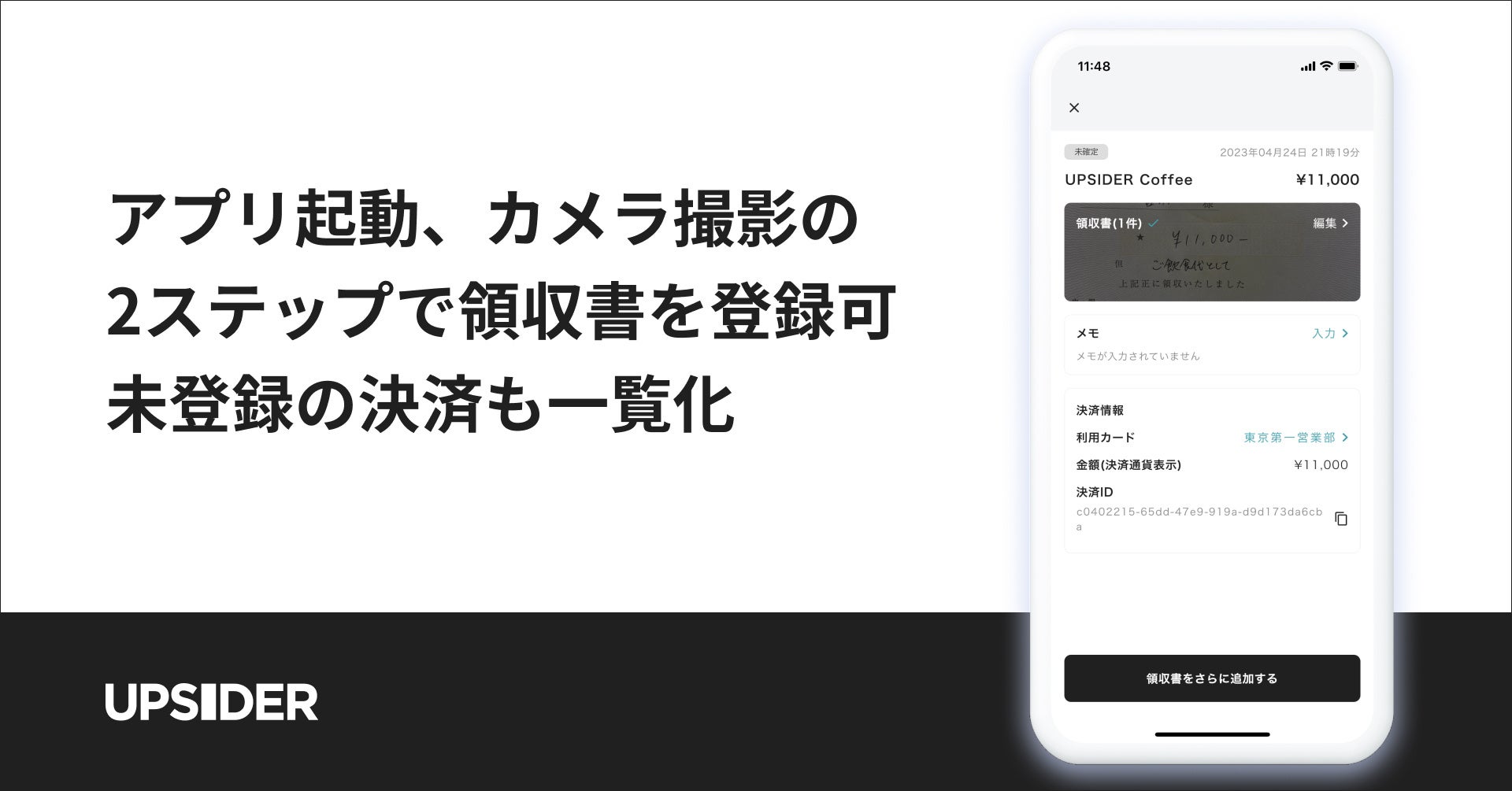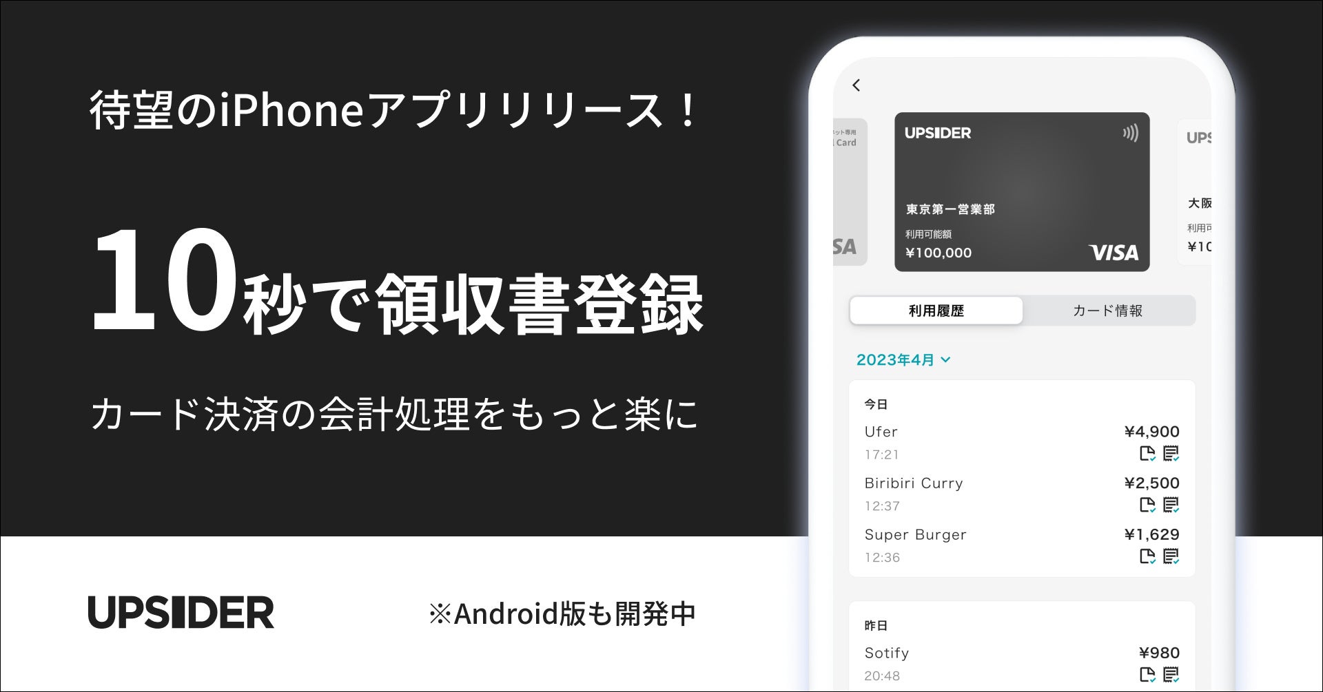 10秒*で領収書を登録完了!法人カード「UPSIDER」、iPhoneアプリをリリース