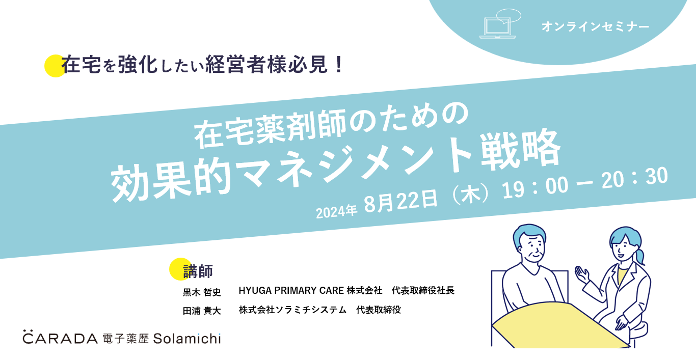 【ソラミチシステム:無料オンラインセミナー8月22日開催】在宅薬剤師のための効果的マネジメント戦略