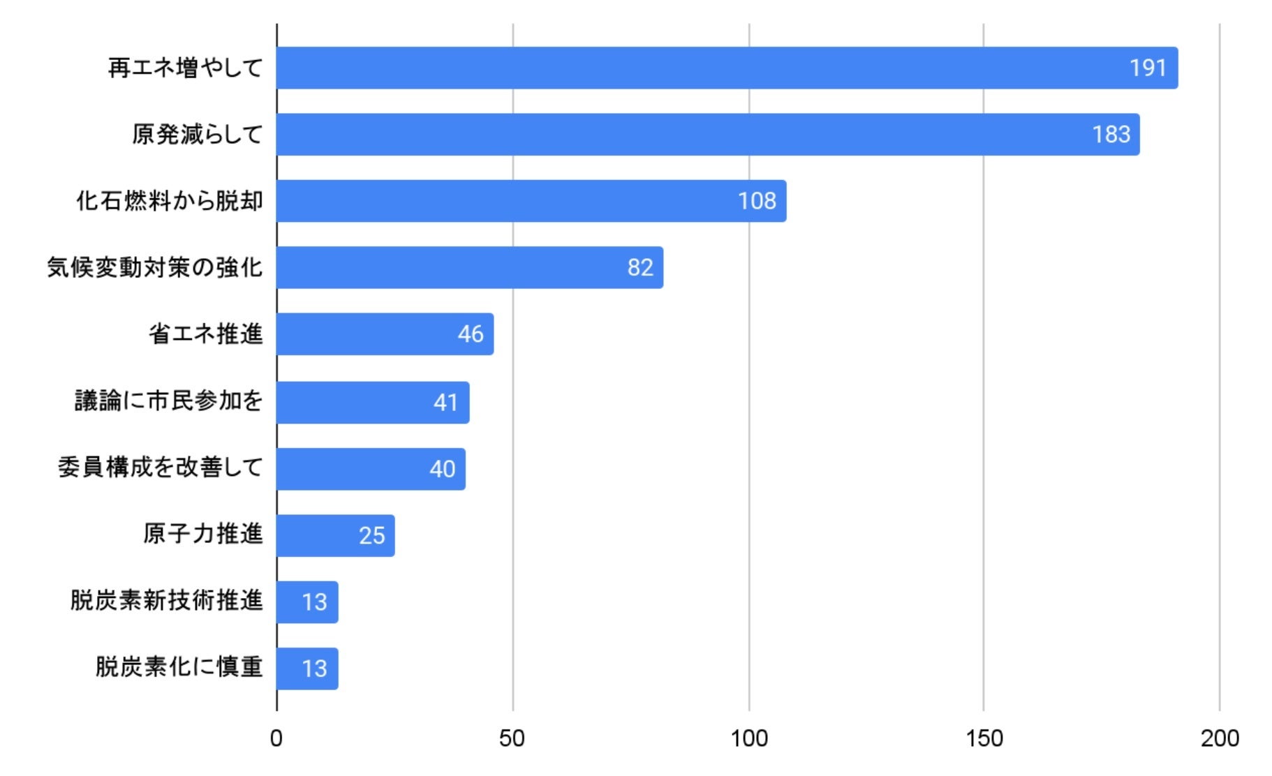 ワタシのミライでは意見箱の分析など、引き続き市民や市民団体の声を可視化し、第7次エネルギー基本計画が持続可能で公正なものとなるよう求めます。