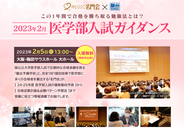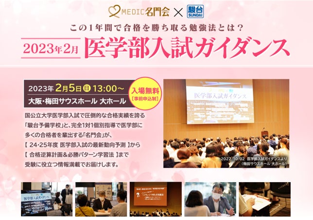 医学部受験に特化した「名門会」×「駿台予備学校」24年・25年度 医学部入試の最新動向予測をお届けする“2023年2月 医学部入試ガイダンス”を大阪・梅田で開催