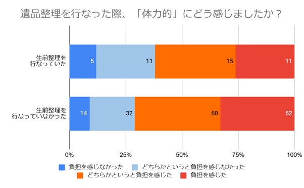 アンケート結果を見ると、生前整理の有無に関わらず、少なからず負担を感じていたことがわかります。