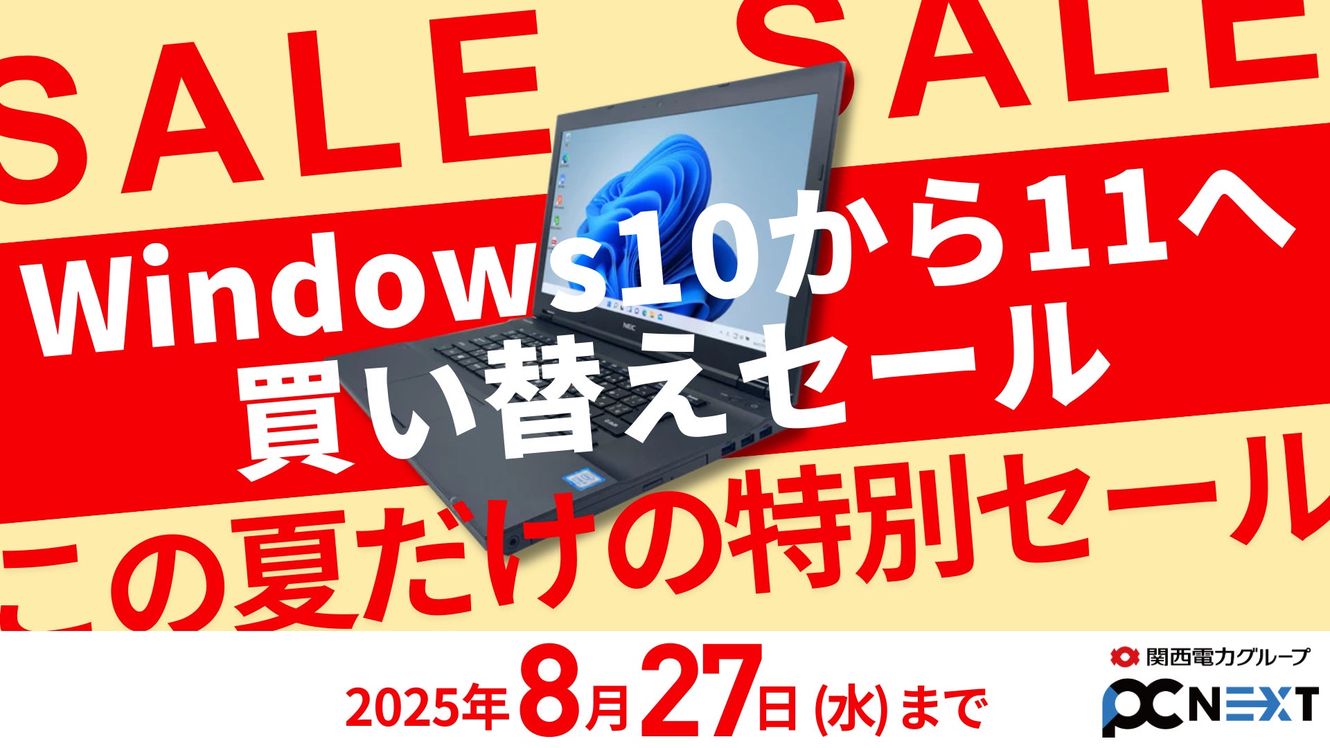 関西電力グループの株式会社ポンデテック(本社:大阪府大阪市、代表取締役:財津和也)は、公式通販サイト「PC next」にて、2025年8月20日(水)~8月27日(水)の8日間、「買い替えセール」を開催します。