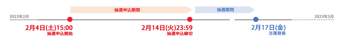 抽選結果発表 お申し込み時にご登録いただいたメールアドレスに当落発表のメールをお送りいたします。 |