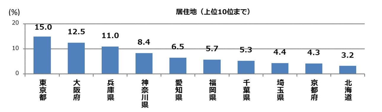 回答者プロフィル:年代・性別は上記。平均年齢54.86歳、独身27.4%・既婚72.6%、居住地は全国(上位10都道府県は下記)