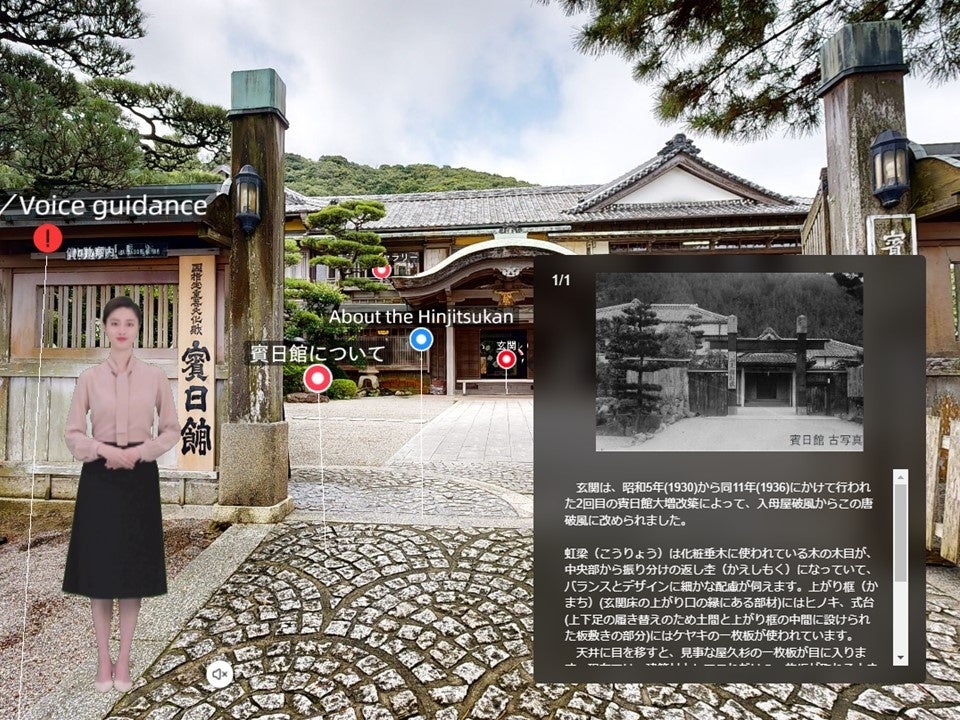 歴代諸皇族など伊勢神宮に参拝する賓客の休憩・宿泊施設として建設され、国指定重要文化財である賓日館について、建物と庭園を360度のカメラで撮影したVR映像をインターネット上に公開しています。