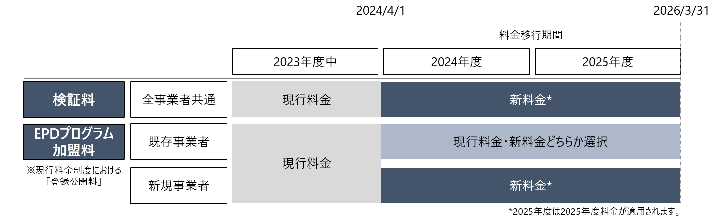 *4:検証料金は、2024年4月1日以降のお申込みから、既存事業者様、新規事業者様問わず一律で新料金が採用されます。2024年4月1日から始まるEPD(カーボンフットプリントだけではない多領域評価の)標準化に伴い、CFPのみを対象とする検証は実施されないため、CFP検証料金は廃止となります。