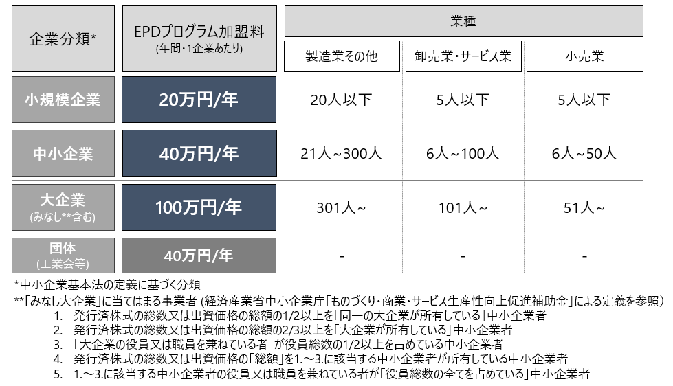 具体的には、EPD/CFPを公開した事業者が支払う「登録公開料金」は、現行の最大150万円から最大100万円に大幅減額します。また、当該料金の名称は来年度より、信頼できる製品環境情報のコミュニケーションの基盤となるEPDプログラムへの加盟を意味する「EPDプログラム加盟料」へと変更します*3。