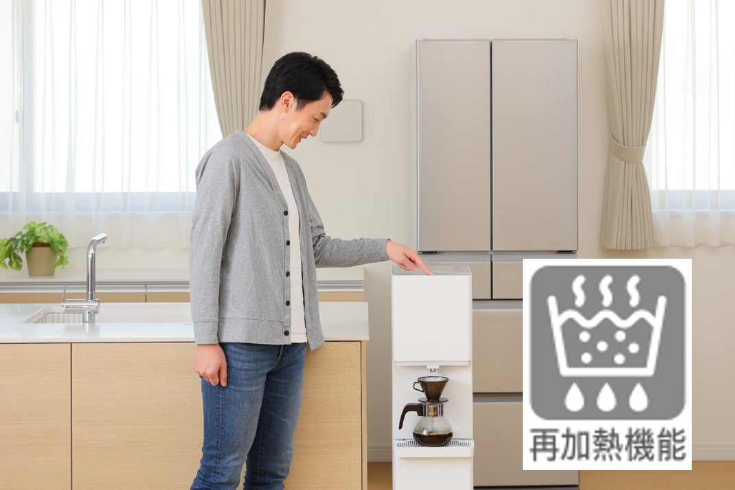 再加熱ボタンを3秒間長押しすることで、通常で注水できるお湯より高い温度のお湯を使用することができます。(約90℃)