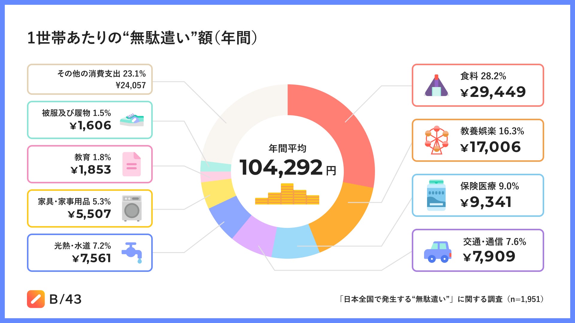 1.1世帯あたりの“無駄遣い”額は、年間平均104,292円