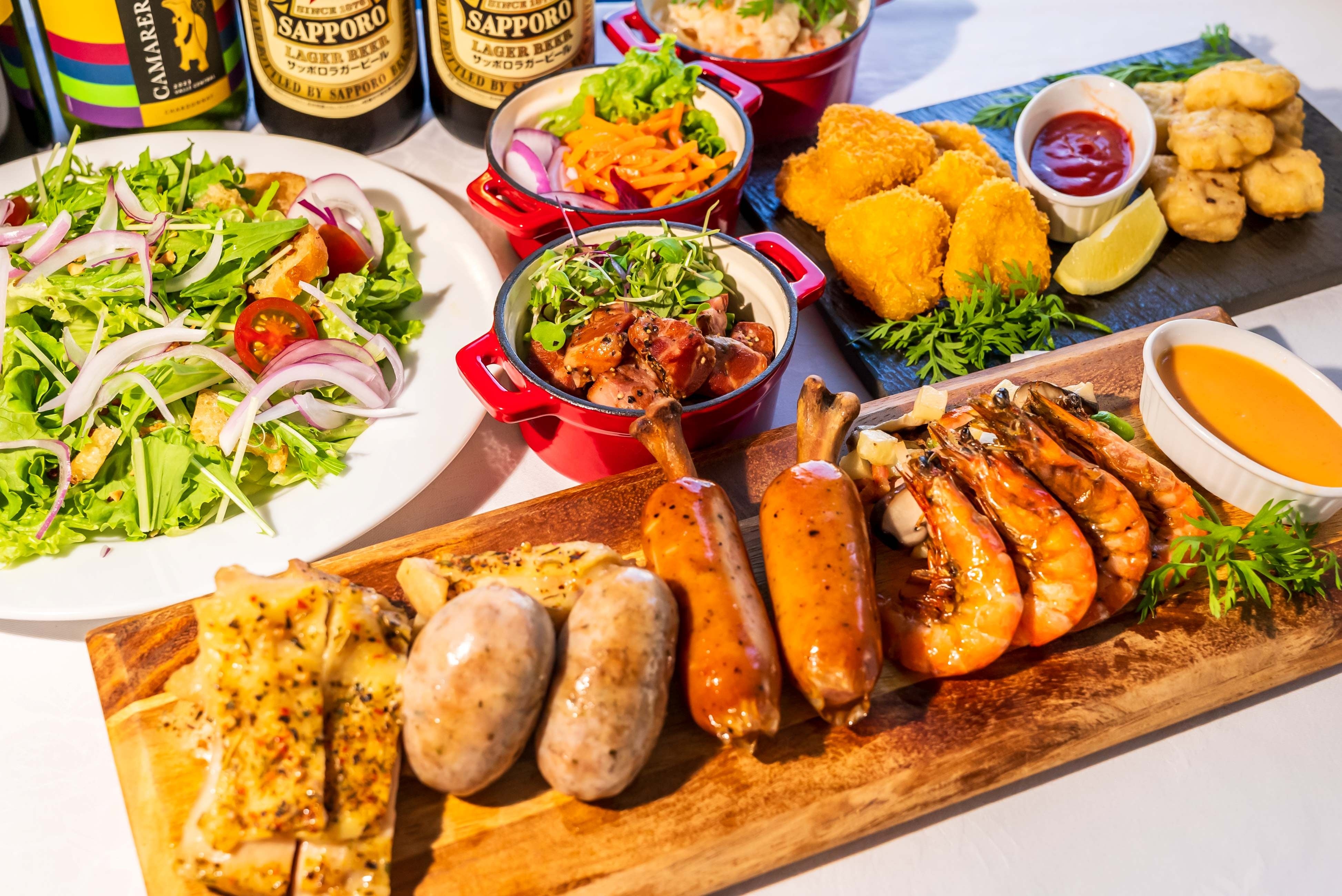 お食事はビールをはじめ、多彩なお飲み物が進むワンプレート料理。そして、今年は通常のフリードリンクにオプション料金追加(1名様から可能)でシャンパンも飲み放題に。