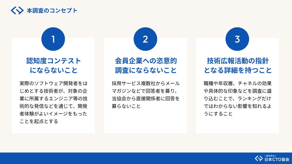 ・日本CTO協会の会員企業への恣意的調査にならないこと