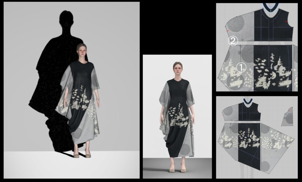 商品化された大前さんのデザインは、衣裳に光が当たった時に浮かび上がる影が女性の顔を描くというギミックを生む繊細なシルエットが特徴的な企画です。3Dモデリングでのシミュレーションを何度も繰り返すことで、産地の職人技による希少価値の高い「匠の素材」を無駄にすることなく、クリエイティブに徹底的に拘ることができた成果と言えます。伝統技術を後世に残すという観点でのデジタル技術の活用は極めて有意義であり、その有効性が実証されました。