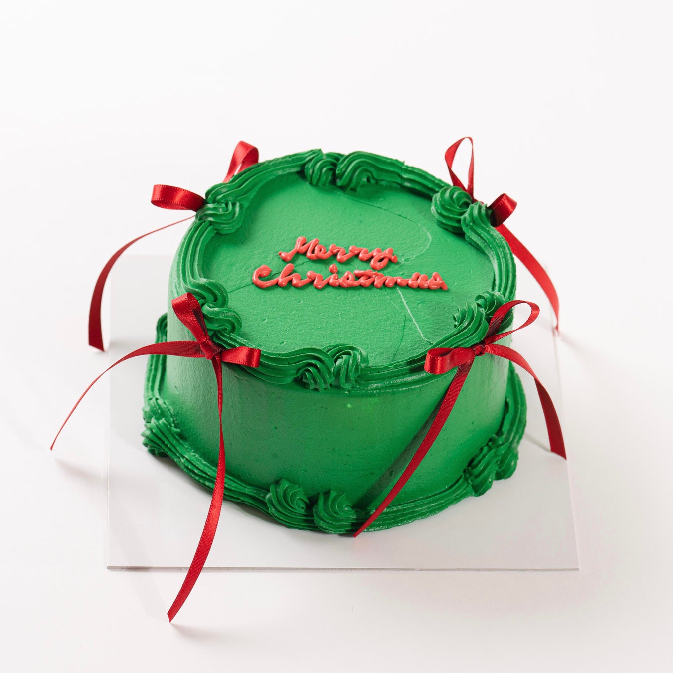 定番人気のリボンケーキが緑と赤リボンのクリスマスカラーになって登場です。