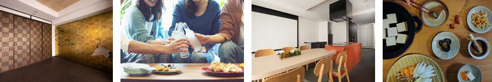 最上階にしつらえた、殿の間(定員6名)・姫の間(定員4名)・若の間(定員4名)と、2階にある忍の間(定員6名)は、客室入口で靴を脱ぐところから日本を感じていただけます。殿、姫君、若君、忍者それぞれのモチーフに合わせ、壁紙や床、建具などの素材やデザインにこだわり、写真映えする空間に仕上げました。「忍の間」には、手裏剣をはじめ、複数の忍具のレプリカなどを入れた隠し箱を仕掛けており、お部屋のどこにあるのか探して遊べます。日本文化に関心の高い海外ゲストはもちろん、国内ファミリーの記念日旅行、ご友人同士のパーティーなどにもおすすめです。