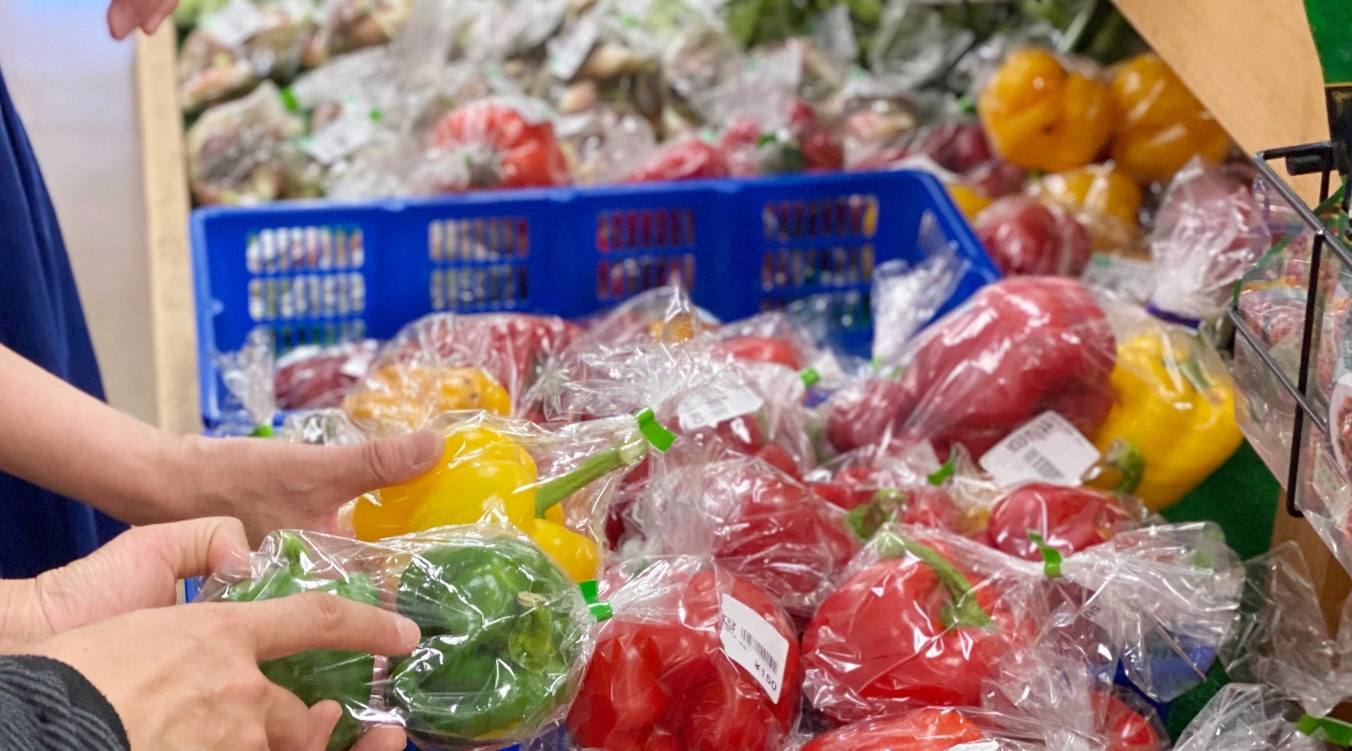 コロナ以降のトレンドで増えてきている大容量パックの蓋つき容器や、SDGsへ向けた容器提案として紙製品やフィルム製品等、テーマである産地直送と絡め展示を行っています。