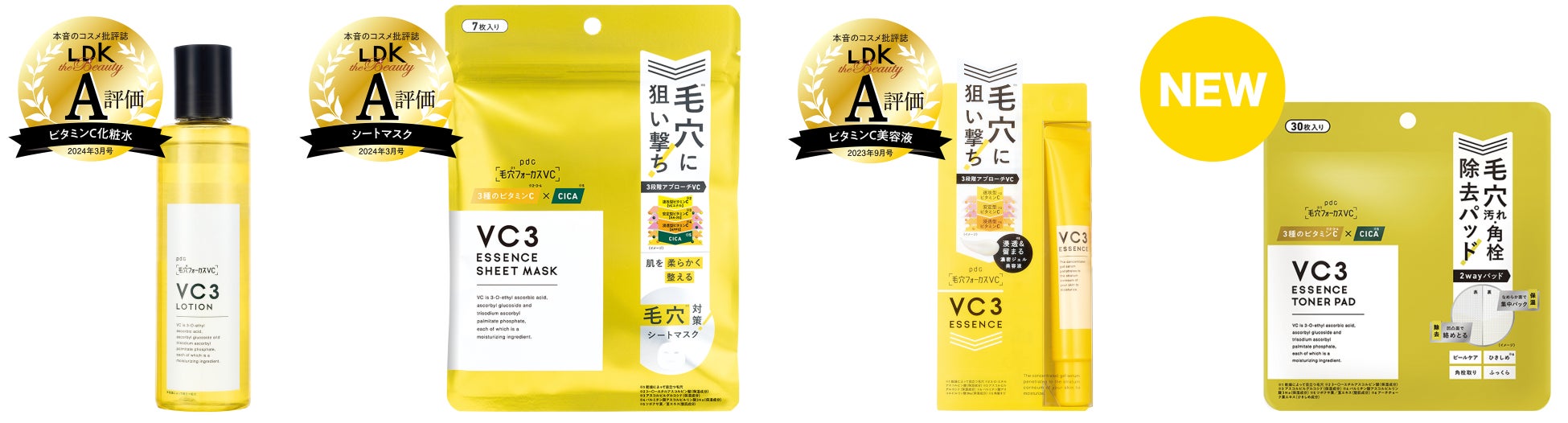 VC3エッセンス、VC3ローション、VC3シートマスク、VC3トナーパッド |