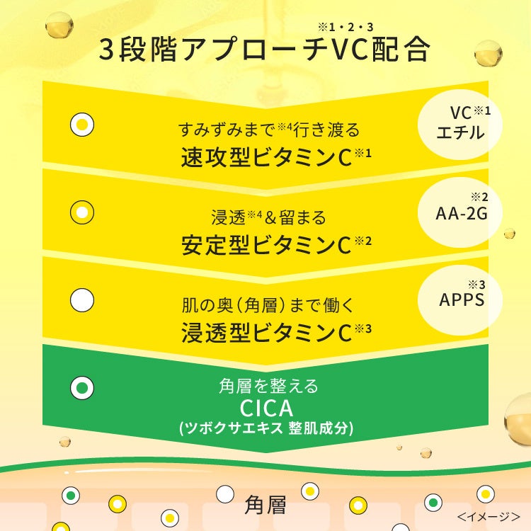 ※3 パルミチン酸アスコルビルリン酸3Na(保湿成分)※4 角層まで