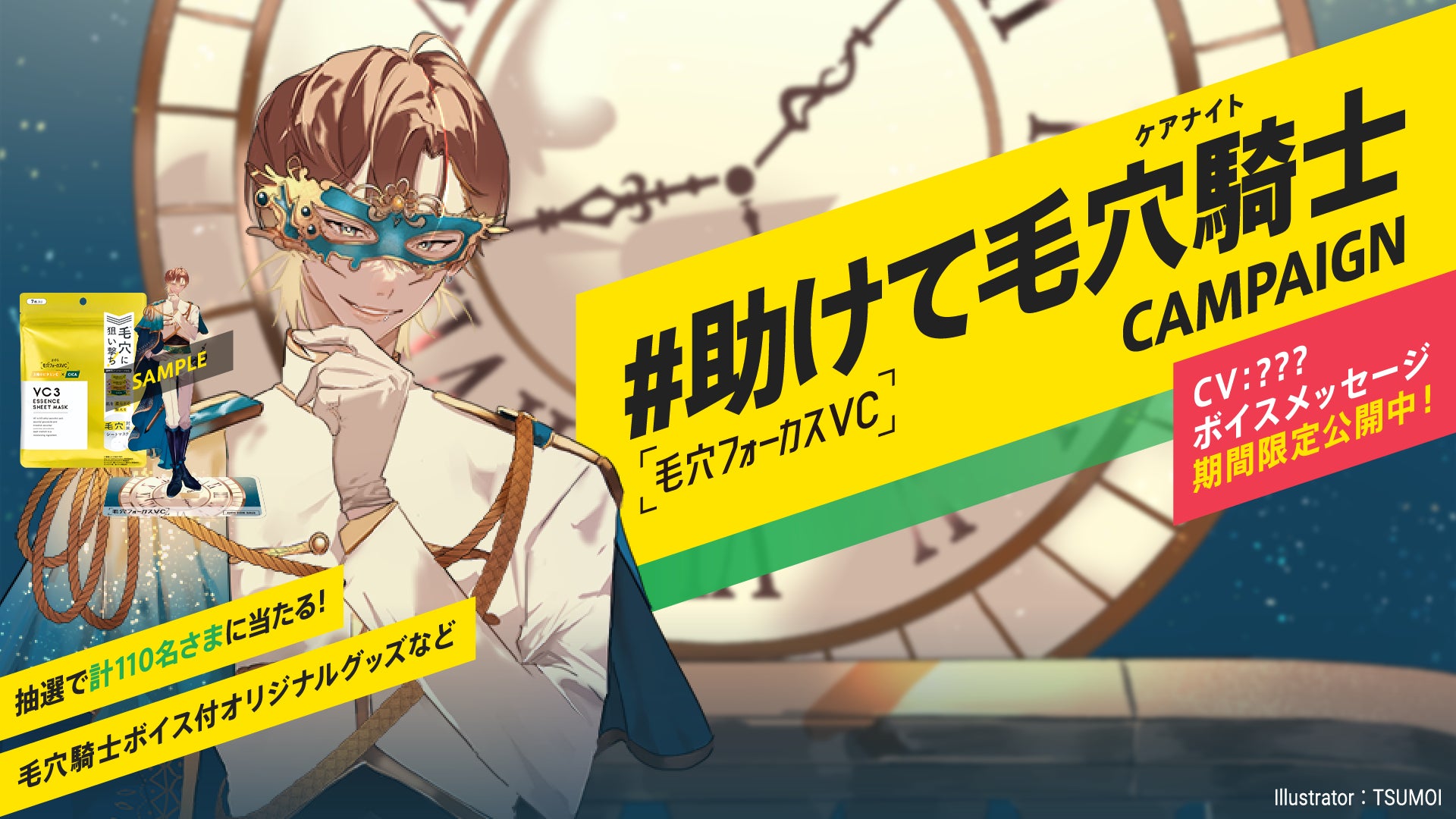 A賞:あなたが考える毛穴騎士からのオリジナルボイス付アクリルスタンド (10名さま) B賞:毛穴騎士からのボイス付アクリルスタンド(50名さま) C賞:毛穴フォーカスVC「VC3シートマスク」(50名さま) |