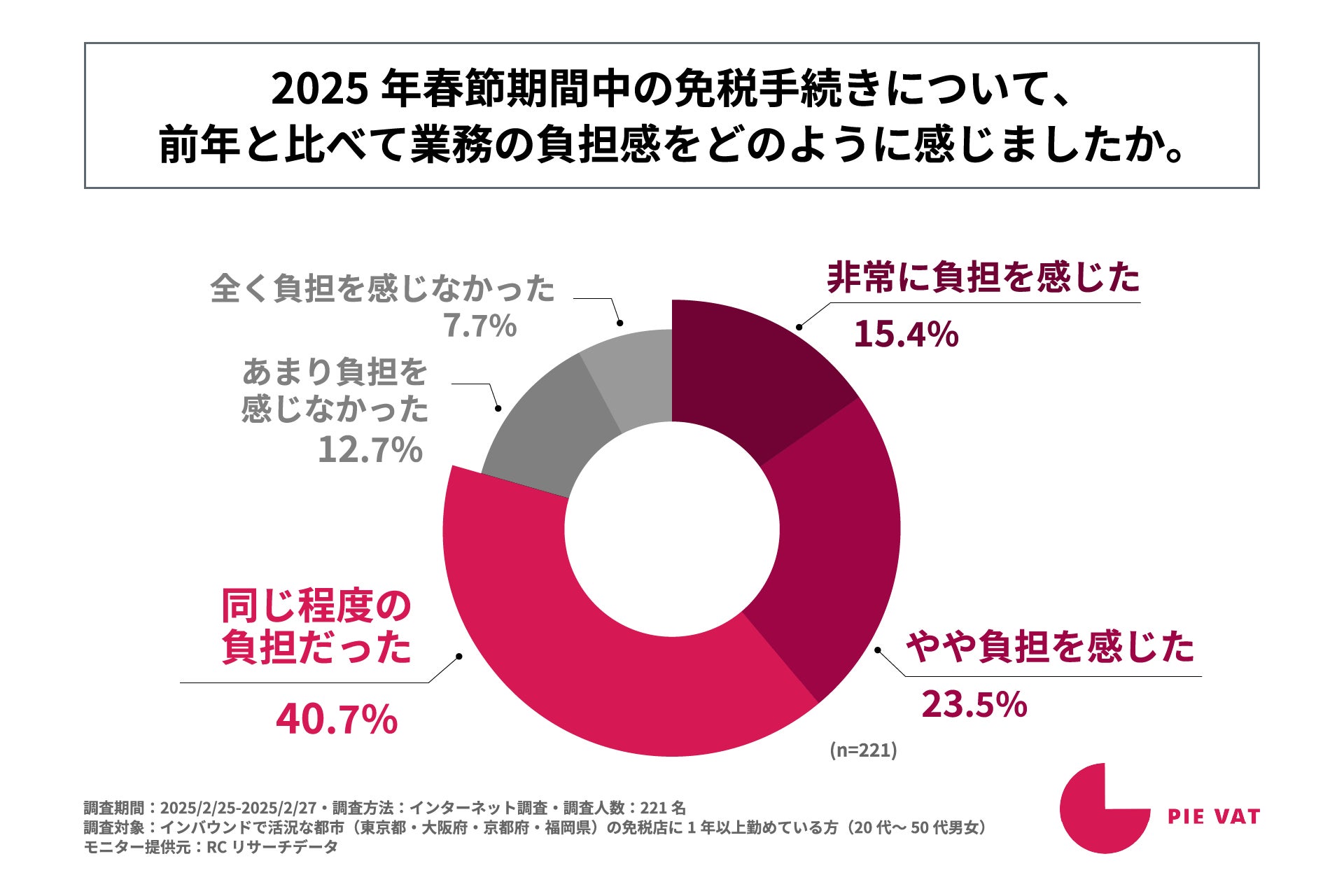 ・約4割の人は、2025年の春節期間中の免税手続きの業務の負担感を前年よりも大きく感じた