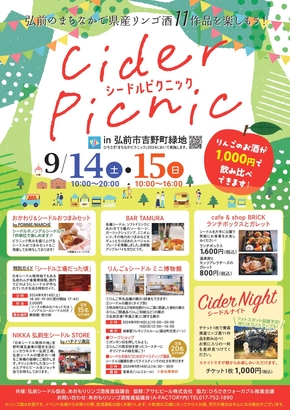 「シードルピクニック」は、ひろさき「まちなかピクニック」2024において実施します。