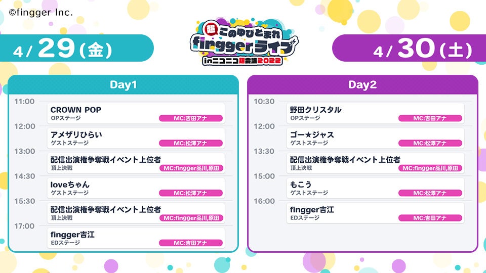 - 「超このゆびとまれfinggerライブ in ニコニコ超会議2022」のタイムスケジュール公開!