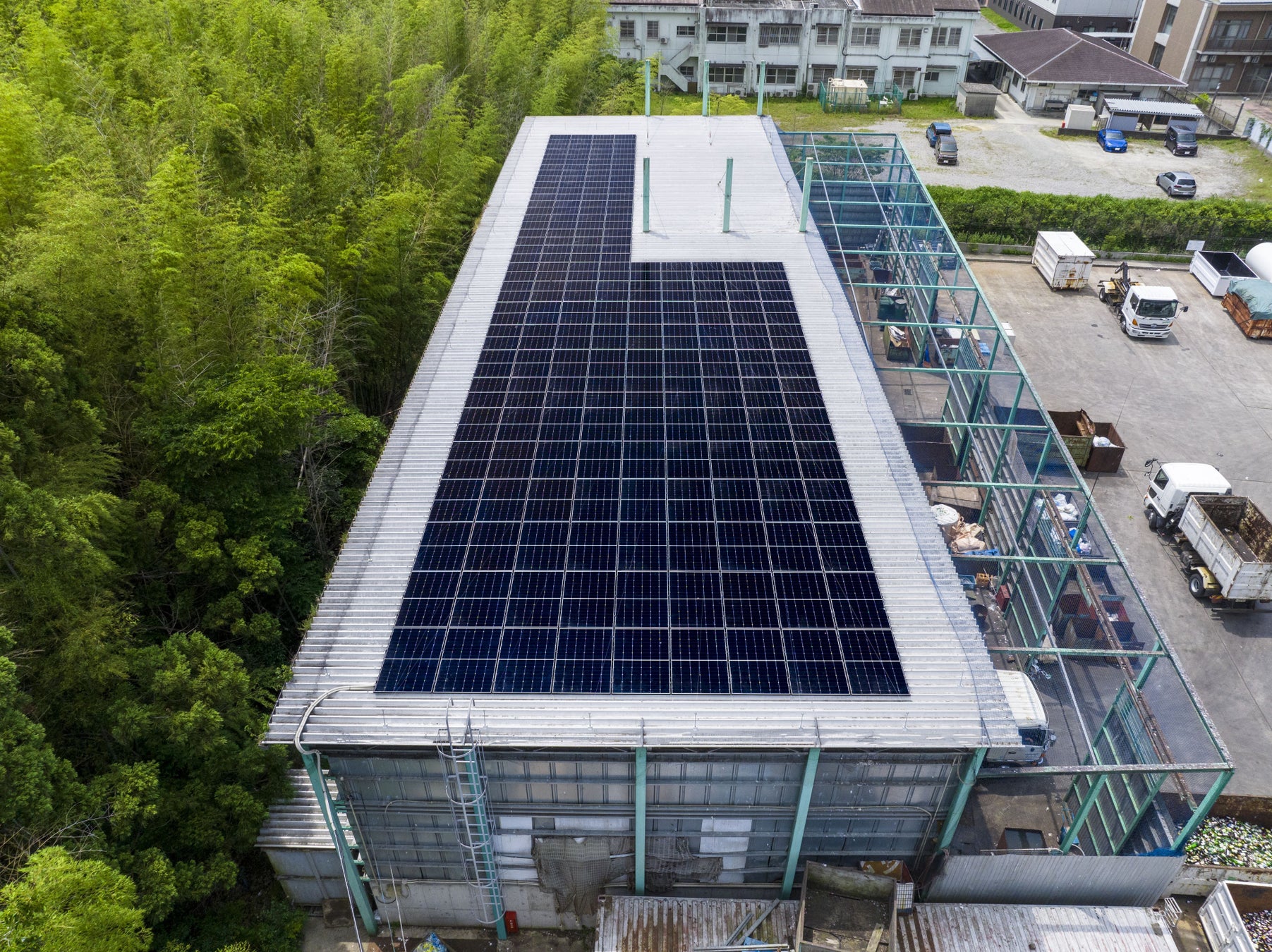 SDGsやカーボンニュートラル社会の実現に向けて、日本でも多くの企業が太陽光発電システムの導入に取り組まれている中、Hi-MO 6の日本での最初の設置事例となったのは、三重県津市にある総合リサイクル企業の有限会社三功様です。Hi-MO 6のラインナップのうち、型式:LR5-54HTH-420M(420W)、260枚(109.2kW)が第1リサイクルセンターの屋根上に設置され、二酸化炭素排出量を抑えながら、三功様の電力需要のうちの約43%を賄っています。