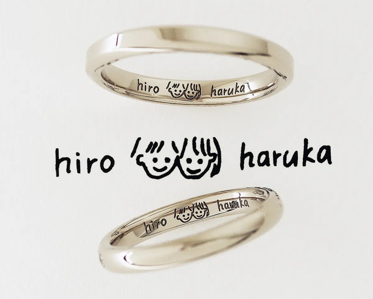 結婚指輪の内側への刻印といえば、お名前と記念日が定番ですが、手書きの文字を刻印することで通常のフォント刻印とは違った愛着ある指輪に。お互いへの手書きメッセージや、イラストなどもOK!実際に手で書いた文字やイラストがそのまま指輪の内側へ刻印できます。
