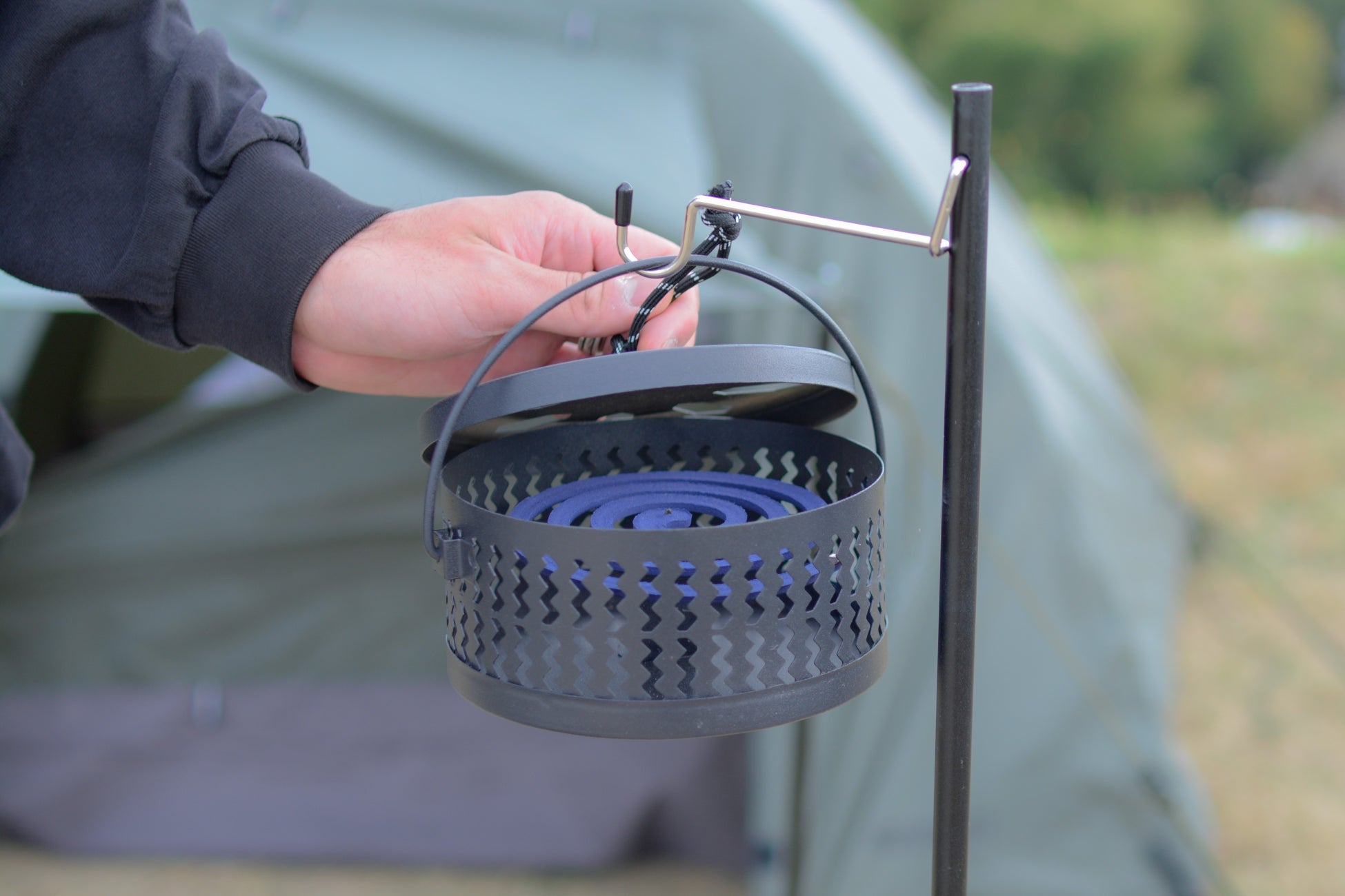 特徴:夏のキャンプに必須の蚊取り線香ホルダー。スタイリッシュな見た目でキャンプサイトにもよく馴染みます。底面の線香立てに市販の線香を刺して使用可能です。吊り下げと地面置きの2way仕様。