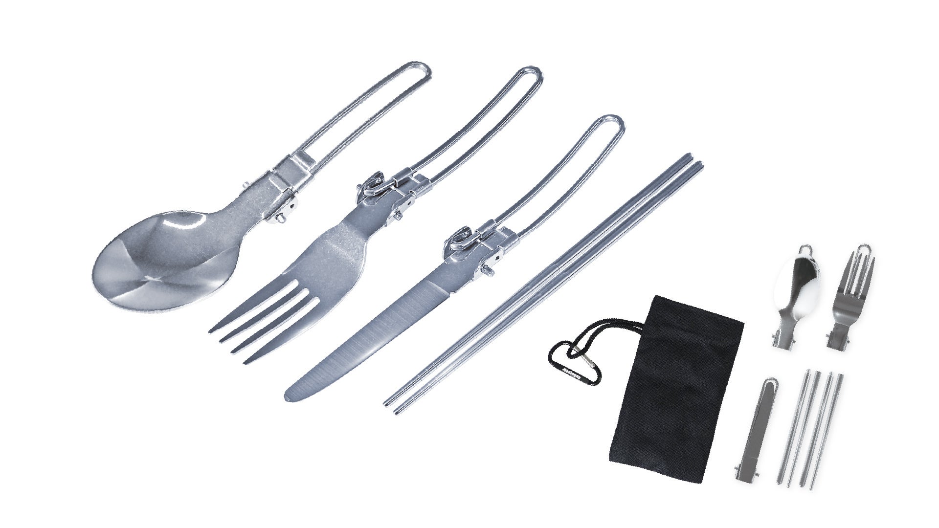 特徴:アウトドアで便利なカトラリー4点セット。それぞれ半分のサイズに折りたたみまたは分解が可能で収納時は専用ケースに格納できます。使用時は2重ロック機能で折れ曲がりを防止。