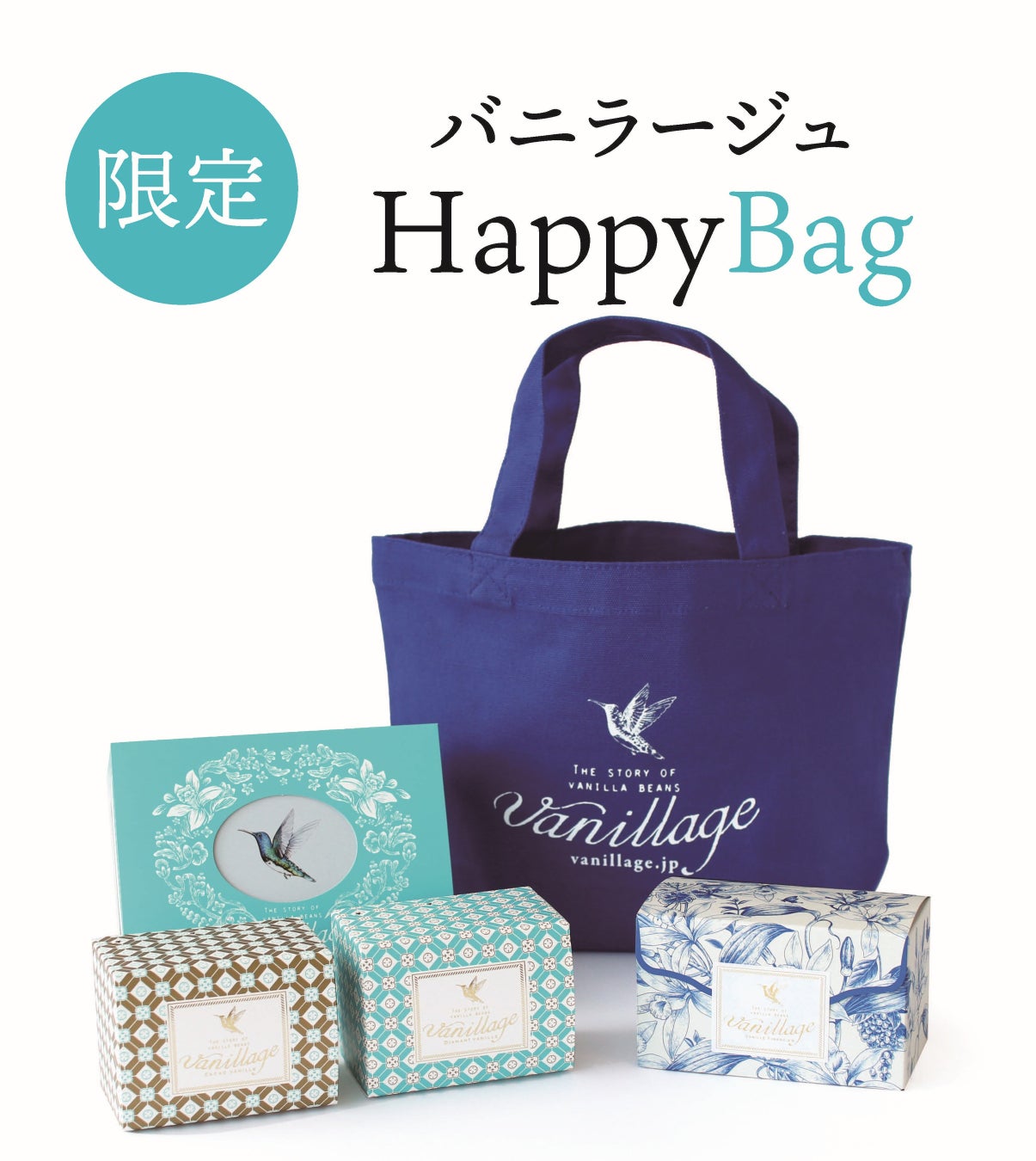 バニラージュHappy Bagを数量限定で販売します。オリジナルのブランドバッグにバニラージュ商品4点を詰め込みました。大人気のクッキー缶も入っています!※無くなり次第終了となります。
