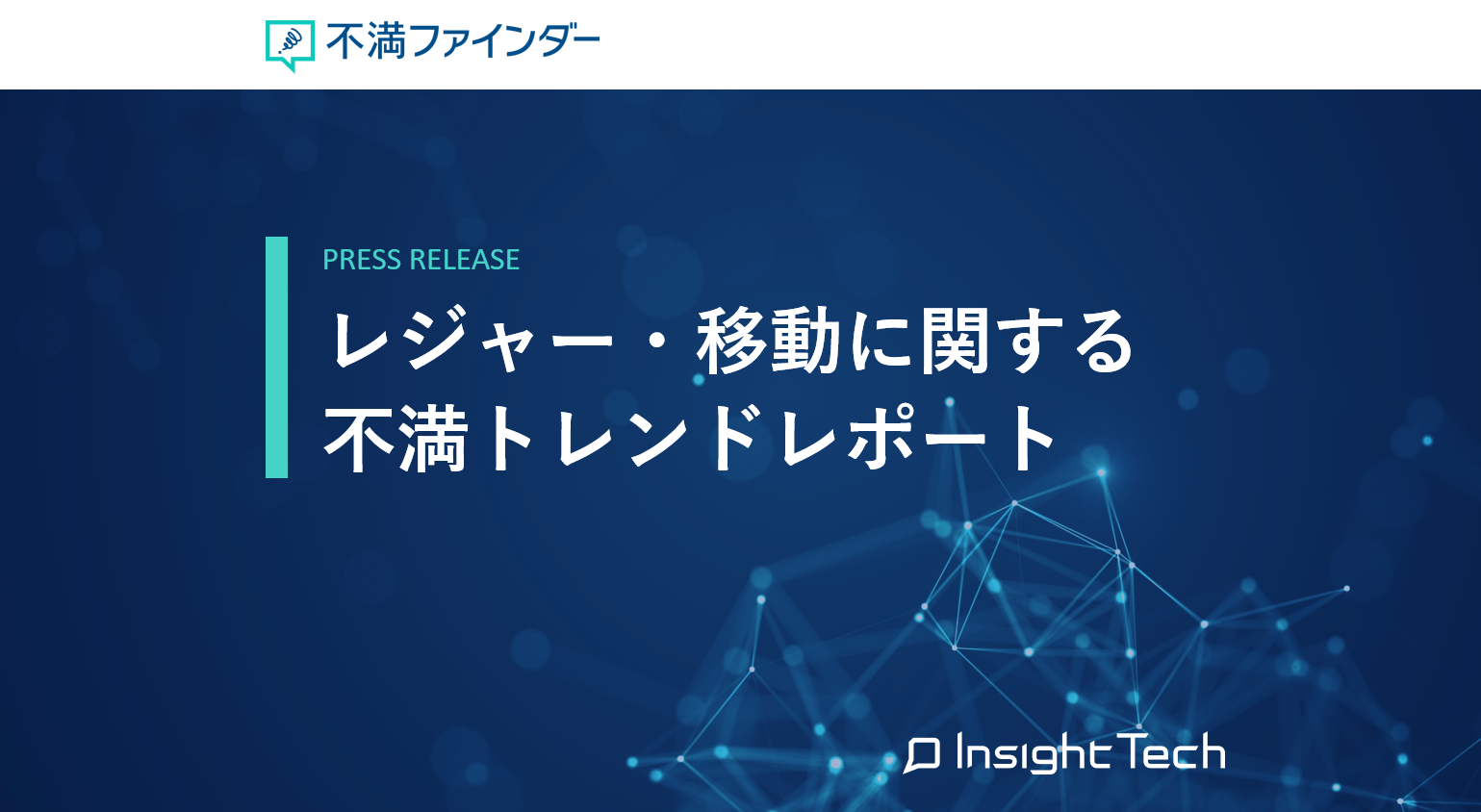 株式会社 Insight Tech(東京都新宿区、代表:伊藤友博、以下 Insight Tech)は、同社が運営する『不満買取センター』に寄せられたレジャーと移動に関する不満を『不満ファインダー』を用いて解析・考察したレポートを公開しました。