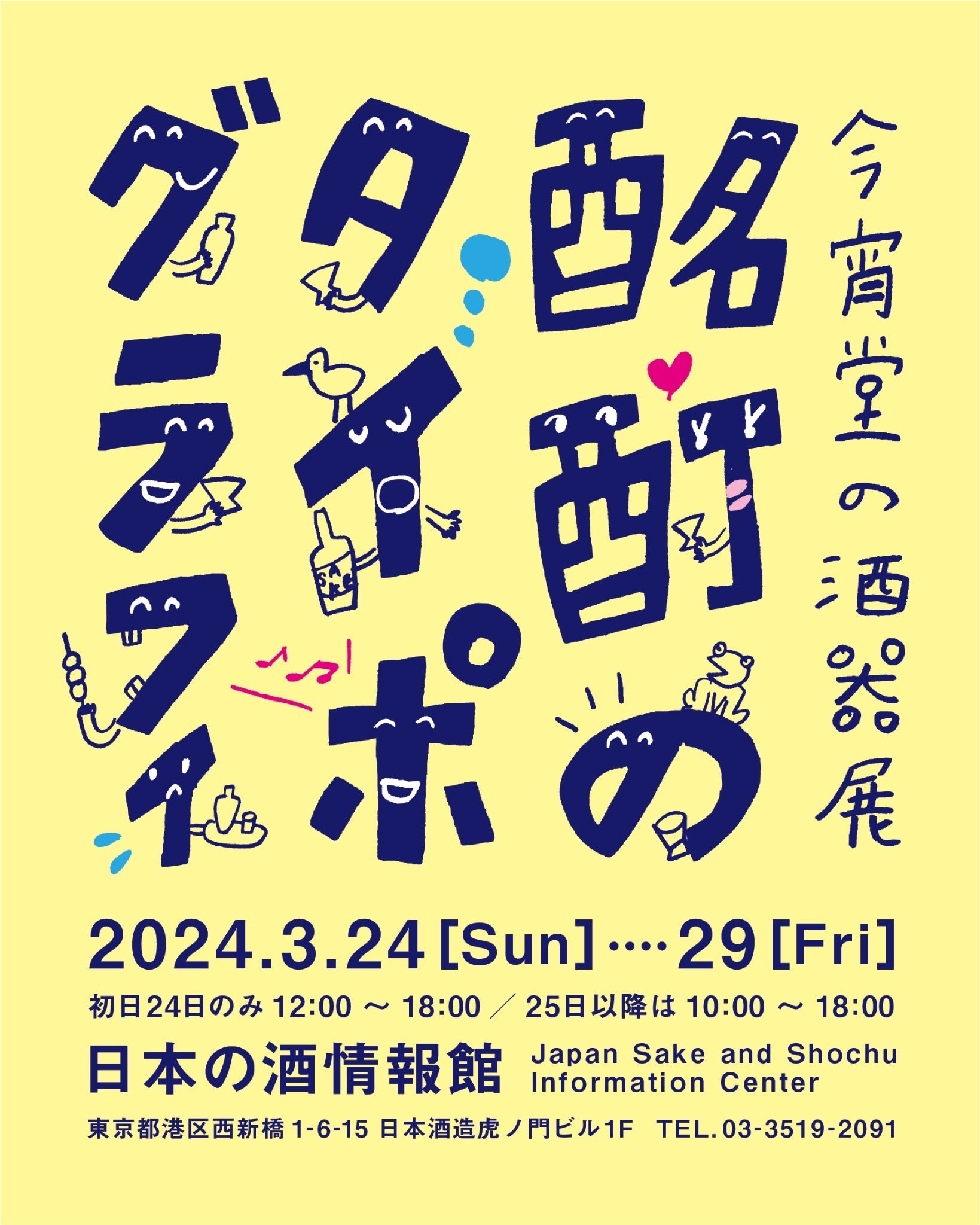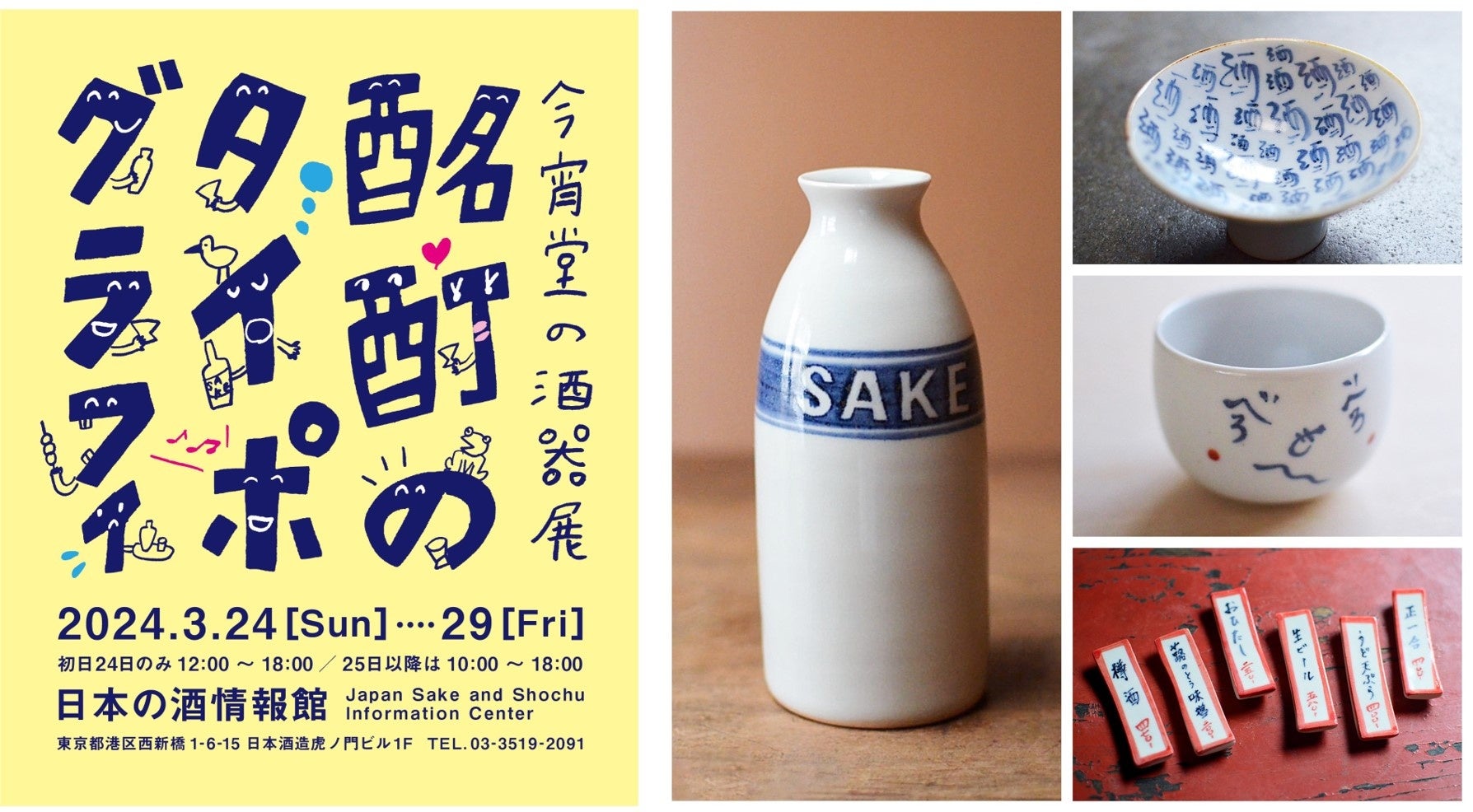 情報館は、日本酒を歴史・文化とともに楽しんでいただくご提案をしています。今回は、京都・鴨川のほとりにある人気の酒器工房「今宵堂」とのコラボレーションによる酒器展『酩酊のタイポグラフィ』を2024年3月24日(日)~ 29日(金)に開催いたします。