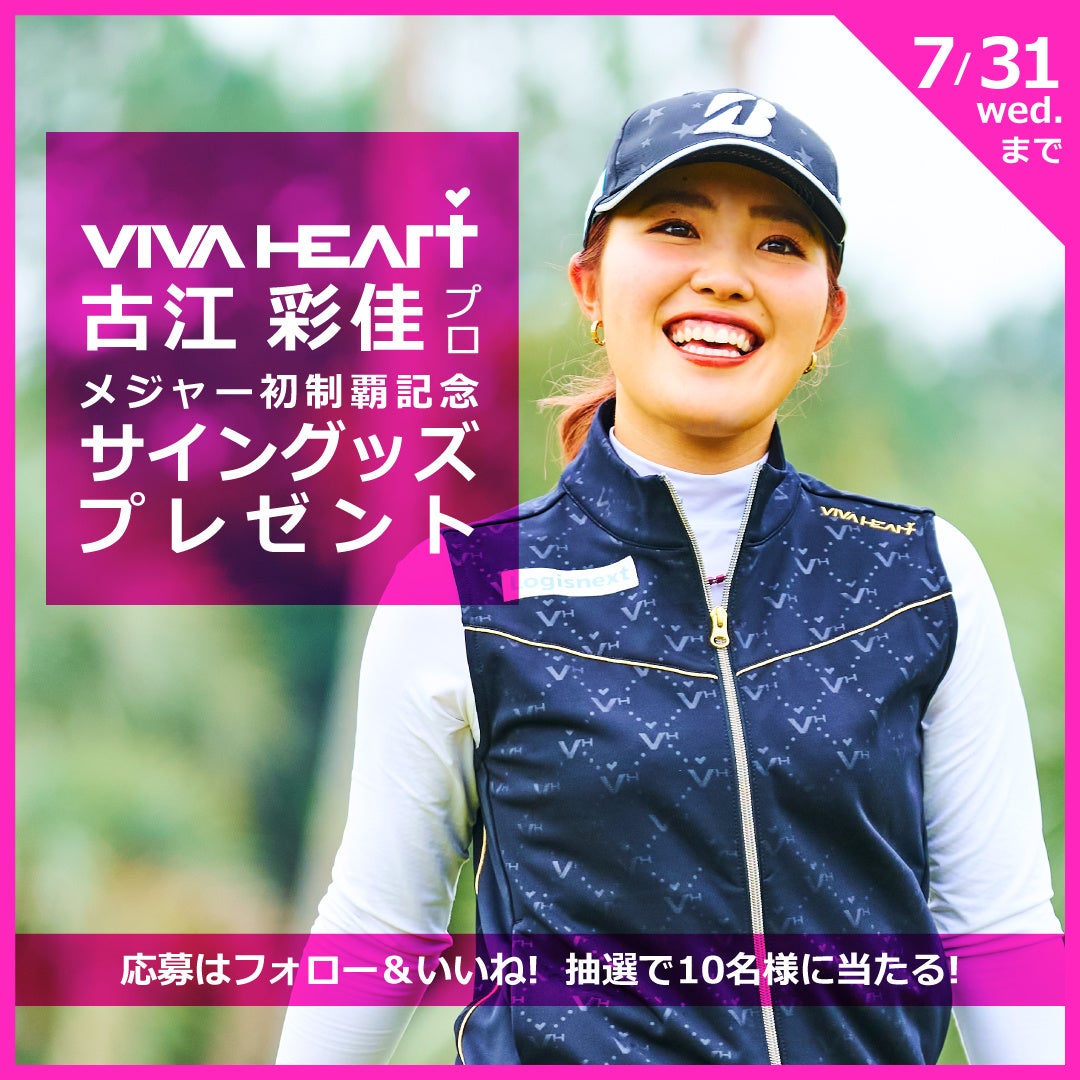 VIVA HEART オフィシャルインスタグラム(@vivaheartofficial)をフォローし、キャンペーン投稿に、いいね!を押していただいた方の中から抽選で10名様に古江彩佳プロのサイングッズをプレゼント。